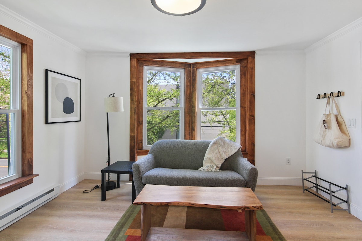Pobjegnite u šarmantni historijski dom s originalnim drvenim elementima i modernim detaljima. Savršeno za ugodan odmor ili kao početna tačka za avanture na otvorenom. Uživajte u živahnosti života u centru grada, blizu prirode! Nalazi se odmah iza ugla popularnog kafića Gimme, ramena, pizze, barova, pivara i još mnogo toga! Grad Ithaca #STR-25-62 5 min vožnje do Cornella, Farmerske tržnice, Trader Joes 10 min hoda do Ithaca Commonsa <10 min vožnje do koledža Ithaca, planinarskih klisura, trgovina, trgovina namirnicama i vinarija