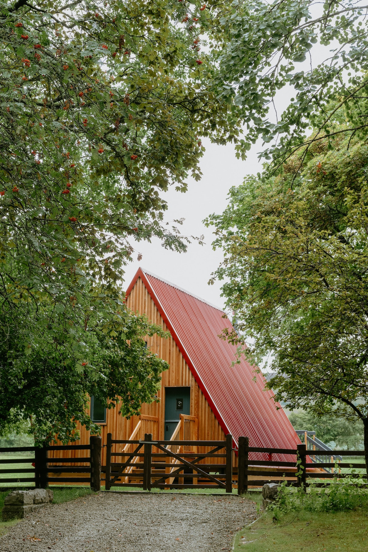 Designer A-Frame Cabin, with Highland Cows nearby