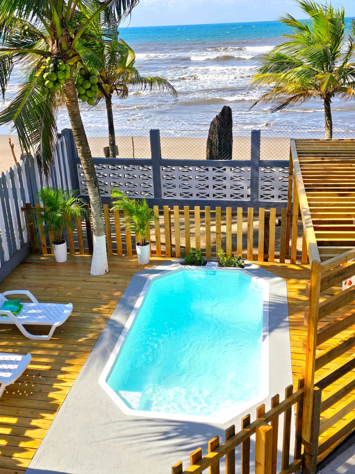 Iznajmite tri od naših šest (6) prekrasnih brvnara uz obalu okeana, s bazenom, koja se nalazi u našem objektu od 2 bloka. Trenutno, zbog Covid-19, iznajmljujemo samo 80% naših kapaciteta kako bismo ispoštovali biosigurni protokol. U bazenu se nalaze komora za hlađenje, mikrovalna pećnica, dozator za vodu od 5 galona, aparat za kafu i plin (s punim kaminom). Restorani, banke, supermarketi, prodavnice, apoteke, benzinska pumpa itd. Udaljeni su samo nekoliko minuta.