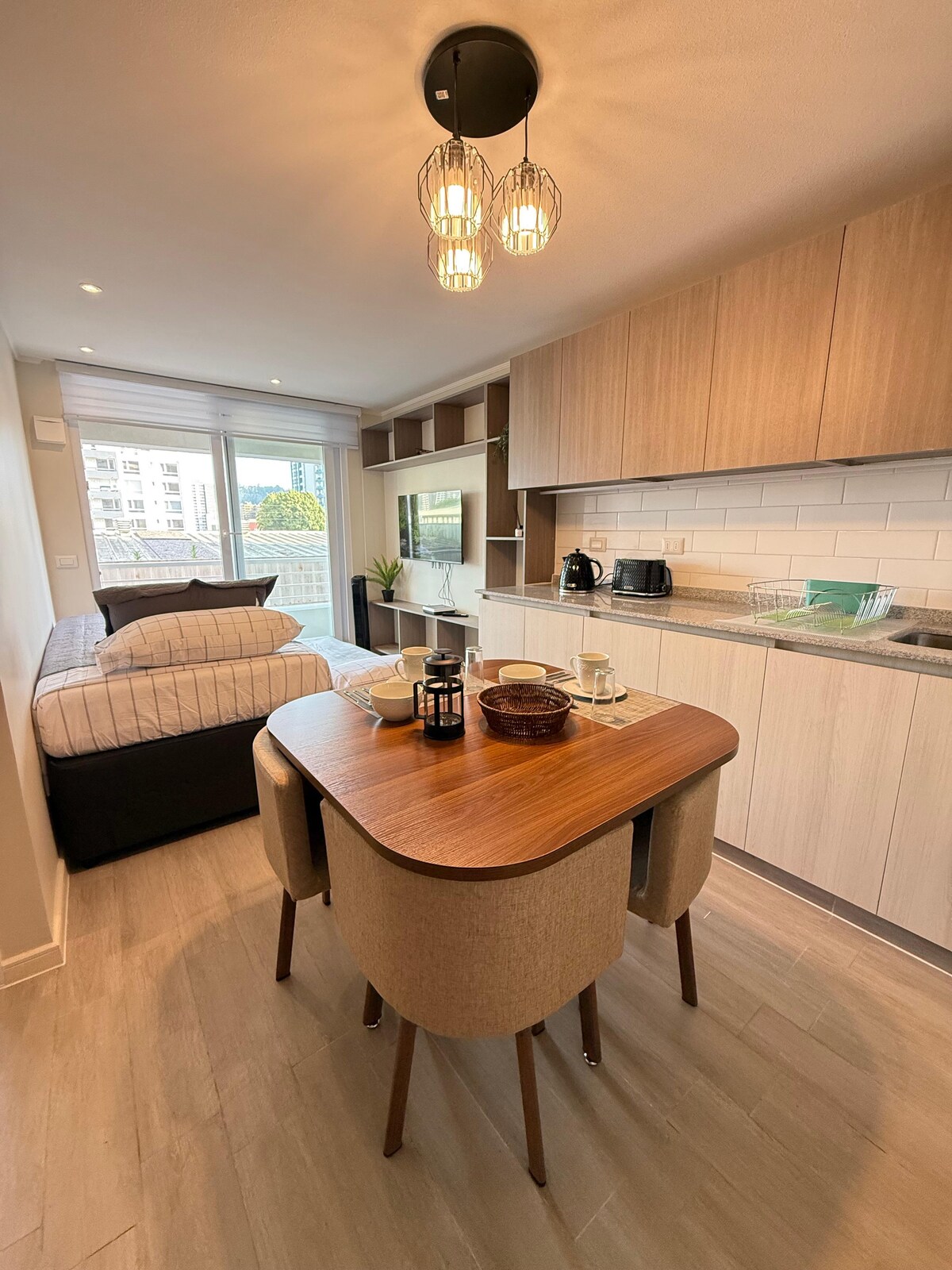 Moderno y cómodo departamento en el corazón de Concepción, ideal para estudiantes, viajeros y profesionales. Ubicación privilegiada: a pasos de la Universidad San Sebastián y muy cerca de la Universidad de Concepción. Disfruta de un espacio luminoso, con WiFi rápido, Smart TV y cocina equipada. Excelente conectividad a transporte público, supermercados y restaurantes. Perfecto para estadías cortas o largas.