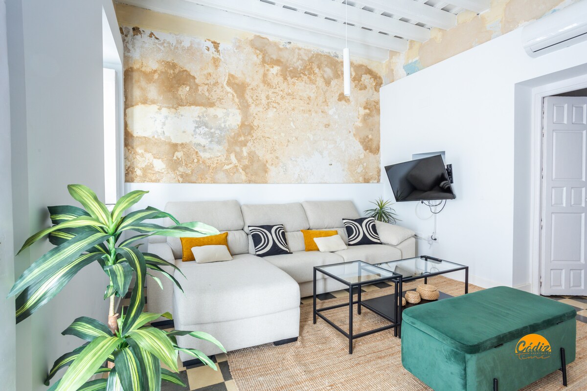 Smješten u srcu historijskog centra grada, ovaj stan je udaljen samo dvije minute hoda od Centralne tržnice Cádiz, a okružen je najpoznatijim spomenicima i glavnim trgovačkim zonama. Smješten na drugom spratu, ima tri spavaće sobe, dva kupatila sa blistavim podom, dnevnu sobu, trpezariju i kuhinju. Osim toga, stan je opremljen Wi-Fi mrežom i klima uređajem, što ga čini idealnim mjestom za uživanje u autentičnom doživljaju Cádiza.