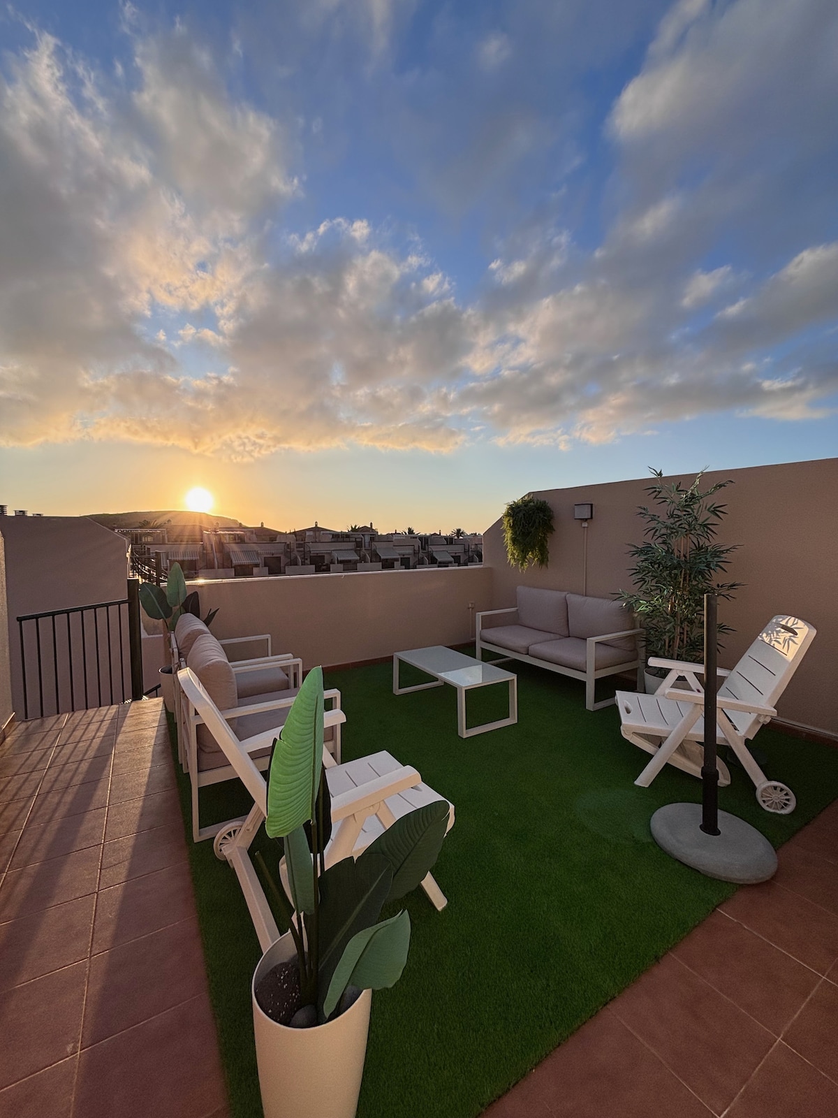 Bienvenidos je naše potpuno novo potkrovlje u Las Chafirasu! Ovo elegantno i moderno potkrovlje je idealno za parove ili porodice s najviše 3 osobe. Ima odličnu osvijetljenost i ugodnu atmosferu. Smješten 5 minuta od južnog aerodroma, Golf del Sur, Amarilla Golf i plaže La Tejita, savršen je za ljubitelje golfa i biciklizma, ima direktnu vezu s autoputem i 5 minuta od najboljih plaža. Rezervišite sada i uživajte u nezaboravnom boravku na prekrasnom otoku Tenerife!