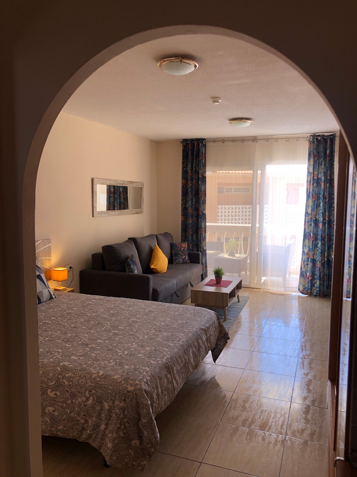 Naš studio se nalazi u rezidencijalnom parku Parque Carolina u neposrednoj blizini veličanstvene Žute planine. Sastoji se od kompletne kuhinje sa svim dodacima (frižider, toster, aparat za kafu, mikrovalna pećnica, mašina za pranje veša), kupatila s tušem i bideom, prostora za sjedenje s bračnim krevetom od 150 osoba. Ima i terasu s fantastičnim pogledom na okean. Kompleks ima bazen otvoren tokom cijele godine. Za registraciju će biti potrebni podaci o identitetu ili pasošu