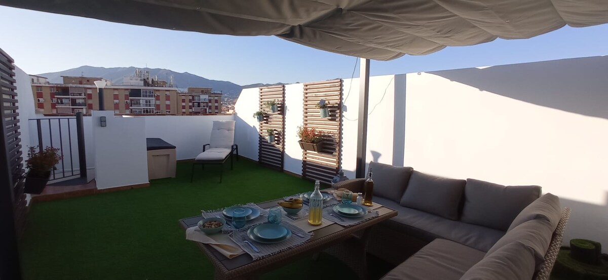 Ovo potkrovlje ima prekrasan pogled na more i planine i ukusno je namješteno. Jedna prostorna jedinica koja će vam omogućiti da se divite moru iz svih područja. Smješten u mirnom zelenom stambenom području s prekrasnim vrtovima i bazenom. Možete uživati u udobnosti i udobnosti privatne ogromne terase , savršenog mjesta za opuštanje! Niz brdo (prilično strmo) ćete stići do plaže La Carihuela s mnogo restorana i prodavnica. Željeznička stanica je udaljena nekoliko minuta hoda i prelazi cestu .