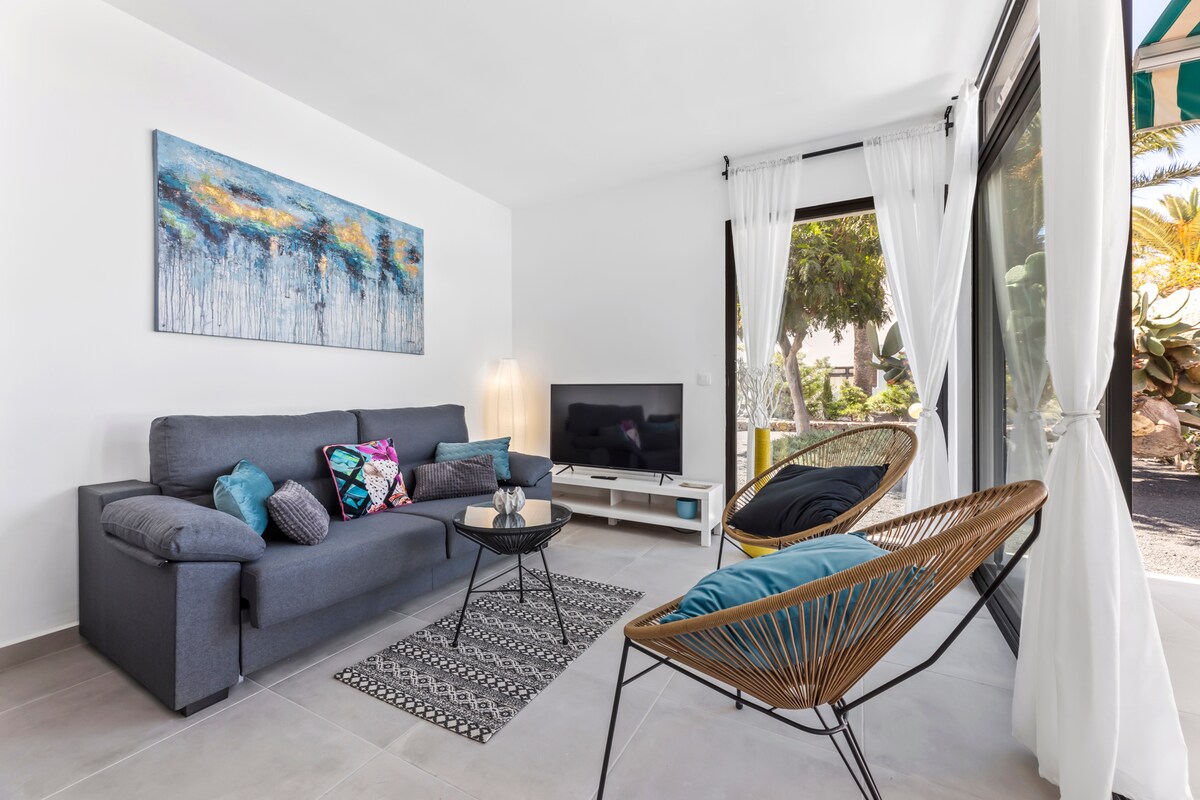 U kompleksu Los Molinos koji je dizajnirao César Manrique, nalazimo ovaj prekrasan jednosobni stan u prizemlju bez stepenica, svijetla dnevna soba ,potpuno opremljena kuhinja, velika terasa, prekrasan i tih panoramski pogled na bazen i planine. Stan ima Wi-Fi i međunarodne TV kanale. Kompleks ima besplatan parking, dva bazena i igralište. Nalazi se 4 minute od plaže Bastián, a oko nje se nalazi banka, supermarketi, prodavnice i restorani.