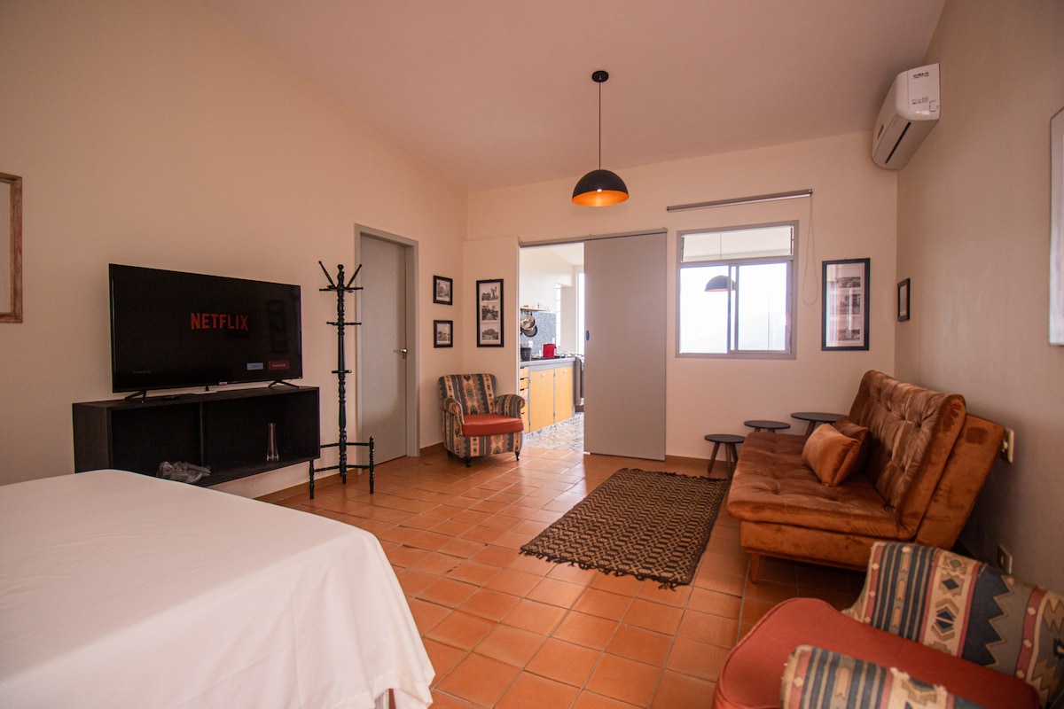 Živite u jednom od najstarijih i najočuvanijih kolonijalnih setova u Brazilu, u malom gradu okruženom prirodom, između mora i planine. Probudite se slušajući ptice, u nekoliko koraka uživajte u najboljim restoranima u gradu, kao i prekrasne šetnje, jednostavan pristup vožnjama brodom i izlascima City Tours. Sve to u udobnom i prostranom studiju koji također ima dvorište s natkrivenim prostorom za trenutke slobodnog vremena i rada. Internet 100 mbps.