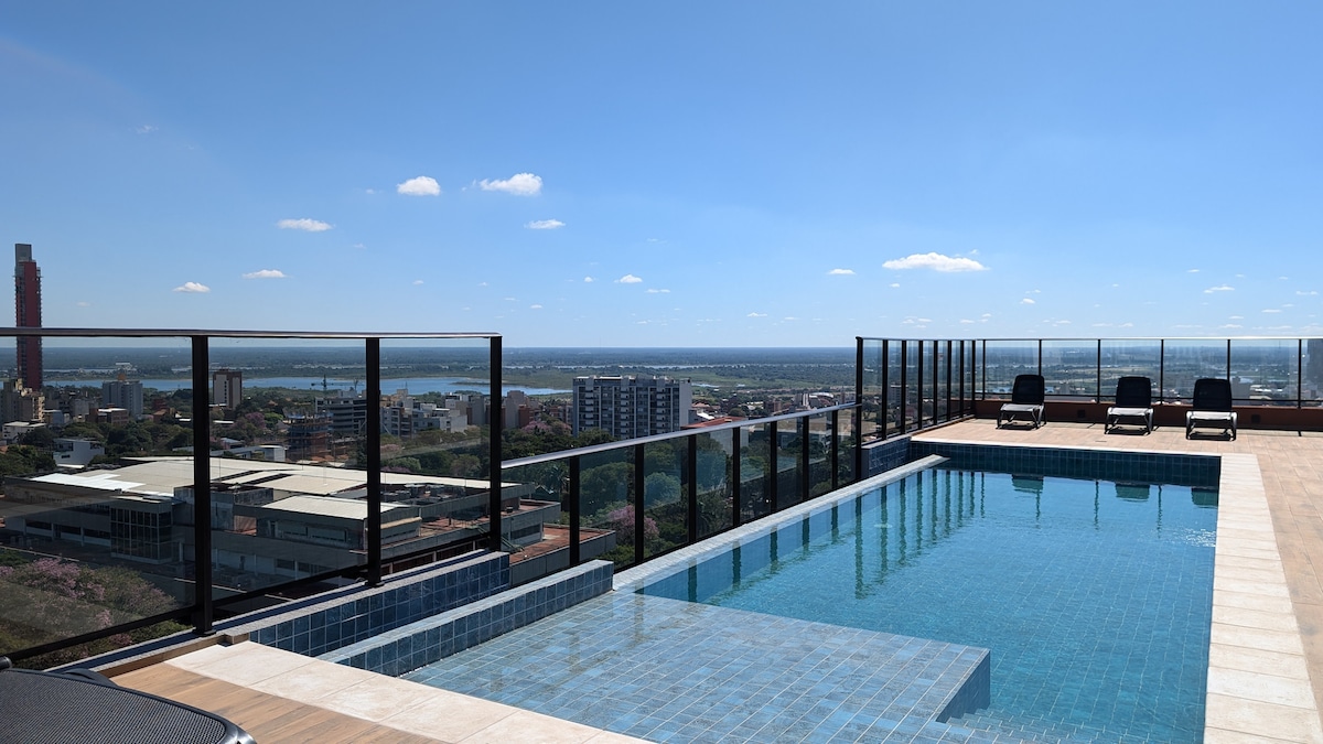 Experience Asunción at its best Stay in a brand-new, modern one-bedroom apartment located in the heart of central Asunción, inside the Zenith México Building, inaugurated in 3/2024. Stylish condo is ideal for couples, families, and travelers, looking for comfort, security, and premium amenities in an unbeatable location. Enjoy panoramic city views, relax in the rooftop infinity pool, or unwind with your favorite show on the 75” Smart TV everything is designed for a high-quality, memorable stay.