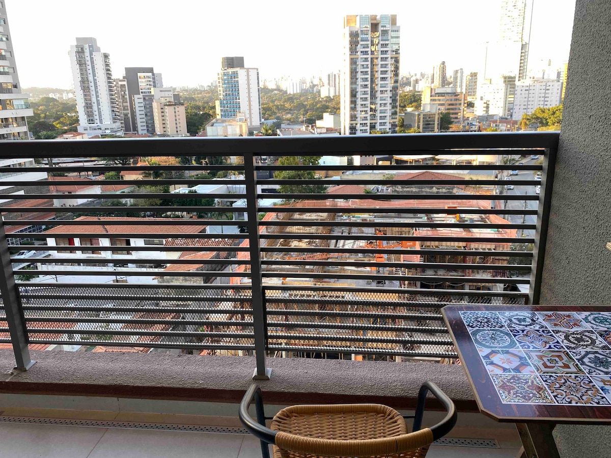 Flat duplex a 5 minutos de caminhada do parque Ibirapuera e 10 minutos de caminhada da avenida Faria Lima. Conta com serviço diário de camareira (segunda-feira a sabado) e 1 vaga na garagem. Possui ótima estrutura no condomínio com piscina, sauna, academia, lavanderia e espaço home-office. Apartamento equipado com ar-condicionado, wifi, jogo de cama, toalhas, kit hotel (shampoo e sabonete) e cozinha completa.