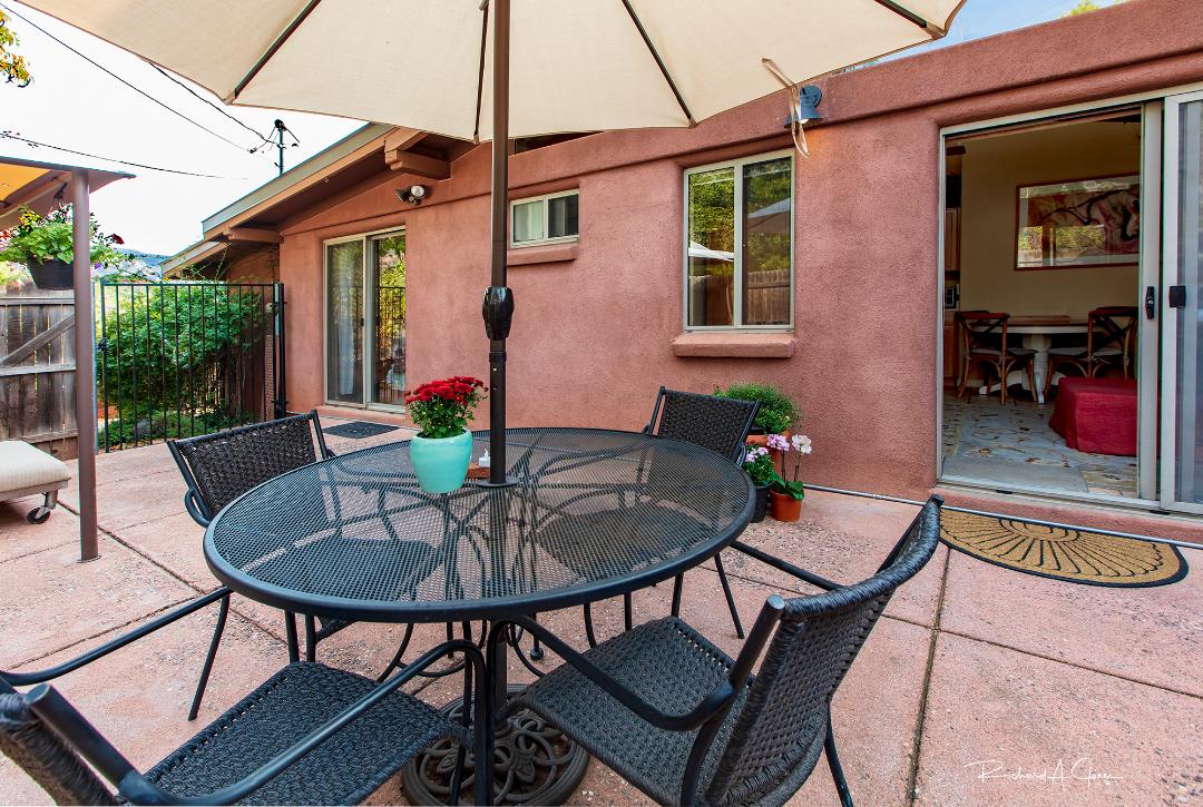Relax in a serene, self-contained, private guest suite with kitchenette and ensuite bathroom in a quiet neighborhood close to shopping and trails in owner-occupied home. Private patio entrance with THREE private, comfy outdoor seating spaces, one with fire pit--Great for morning coffee and night time stargazing! Ideal location in West Sedona near Trailheads, Restaurants, Spas, Coffee Shops, Peace Stupa, Grocery Stores, Shuttle bus stop! Due to allergies, we cannot accommodate support animals.