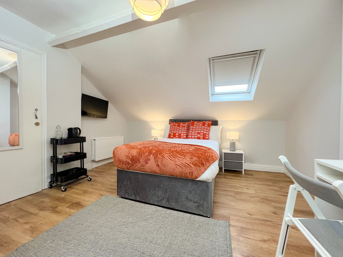 Dobro došli u naš B&B koji više podsjeća na boutique hotel. Dovršeno na izuzetan nivo, ima rasvjetu, pametni TV, besplatan Wi-Fi i još mnogo toga. besplatan pristup spa centru s hidromasažnom kadom i masažnom kadom, parnim i saunama. Soba 3 je velika stražnja soba na prvom spratu, uključujući bračni krevet, standardni bračni krevet, veliku spavaću sobu s tušem. pogled na dvorište. Smart TV, Aircon, besplatan Wi-Fi i još mnogo toga... cijena se zasniva na 2 osobe. Dodatna naknada za dodatnu osobu po noćenju - 100 £ Uredi
