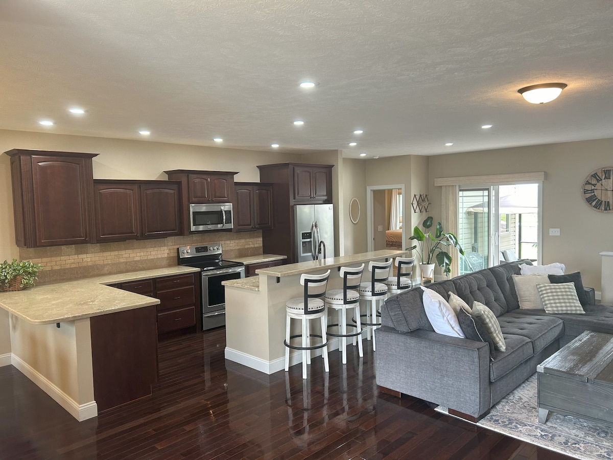 Ovaj prelijepi smještaj je u potpunosti preuređen s mnogo karaktera. Smješteni u centru grada, gosti imaju jednostavan pristup cijelom Kearneyju. Udobno stražnje dvorište s ogradom za privatnost ima masažnu kadu, prostor za sjedenje i vanjsku rešetku. Prilagođeni sto i radne površine napravljene od 125 godina stare drvene građe pružaju rustikalan osjećaj u modernom životnom prostoru. Sve u kući je novo: podovi, ormarići, kućanski aparati, namještaj itd. Priključena garaža za 2 automobila je dostupna gostima.