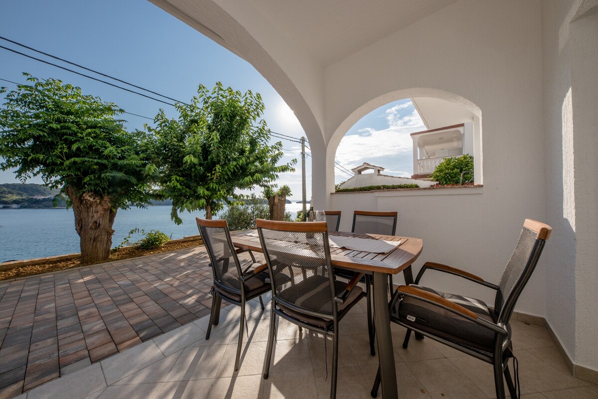 Stan se nalazi u prizemlju u prvom redu do mora. Ima dvije sobe s bračnim krevetima, kupatilo, kuhinju i dnevnu sobu i veliku terasu. Potpuno je nov i potpuno opremljen (mašina za pranje suđa, veš mašina, klima uređaj, WI-FI). Parking je odmah iza zgrade. U blizini stana nalazi se hotel u kojem se može uzeti doručak/ručak/večera, kao i zatvoreni bazen s morskom vodom (i hrana i bazen po razumnoj cijeni - nisu uključeni u cijenu stana).