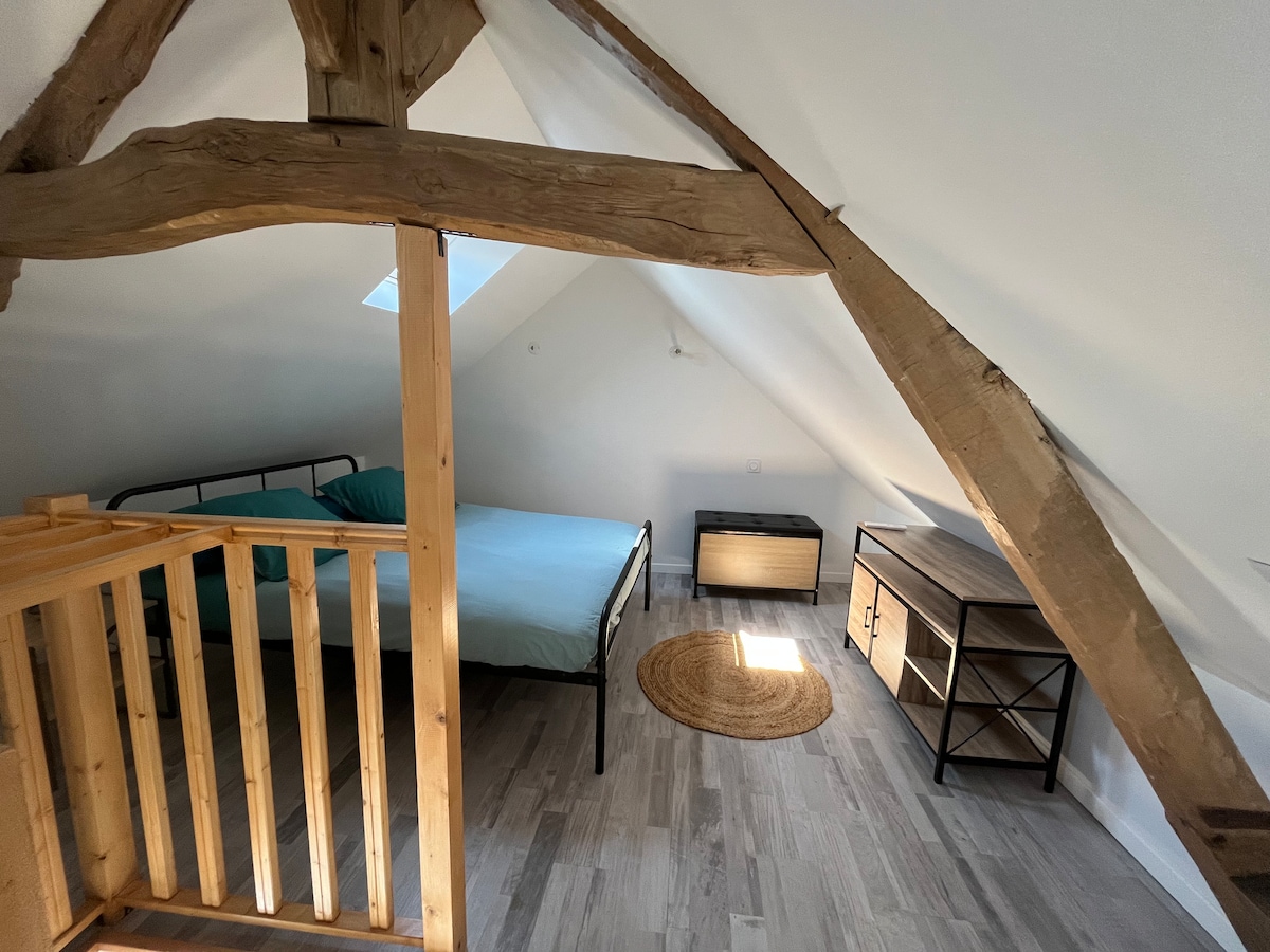 Kuća na selu u srcu prirode površine 33 m² pored, raspoređena u kući od cigle s nezavisnim pristupom. Dnevni boravak/kuhinja s kaučem na razvlačenje za 2 osobe, uključujući kuhinju s mašinom za pranje veša, frižiderom i mini rernom. Televizija. Soba u mezaninu 1 bračni krevet . Strme stepenice. Kupatilo + WC. Zatvoreni voćni vrt površine 1000 m², sto za piknik, omekšivač. Uključeni su internet, grijanje i posteljina. Zatvoreno parking mjesto.