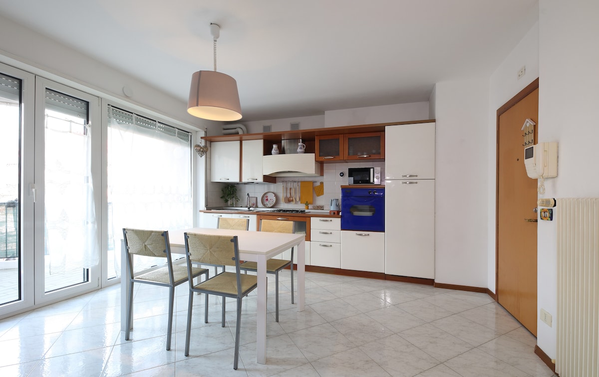 IT022205C2L7H7R77X . Appartamento ristrutturato ed arredato a nuovo. Molto luminoso al 4 piano con vista aperta verso sud. Aria condizionata nella zona giorno e nella zona notte. Parcheggio privato incluso. Vicino alla stazione ed alla fermata flixbus, a pochi passi dal centro della città e dalla pista ciclabile. Supermercato sotto casa e a pochi passi farmacia, banca, bar, gelateria, noleggio biciclette e autobus. Cl. en. D. Non si affitta ad aziende, solo a privati.