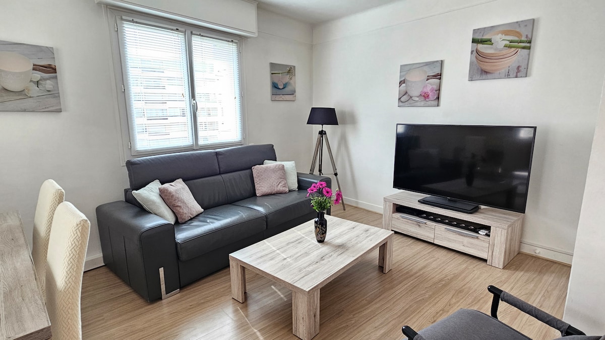 Mon logement est au centre ville, dans une rue calme et sure. Vous apprécierez mon logement pour l'ambiance, la luminosité et les espaces extérieurs et la piscine. Mon logement est parfait pour les couples, les voyageurs en solo, les congressistes. il est à 3mn de la gare et 7 mn du palais des festivals et des congres. location pendant les congrès uniquement.