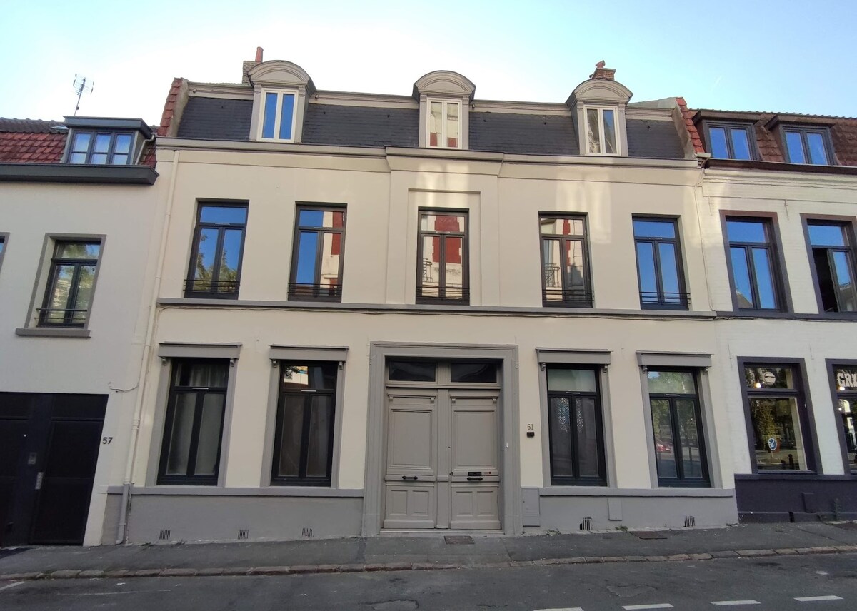 Vrhunski stan na gornjem spratu zgrade između željezničke stanice Lille Flandre (2 minute hoda) i Opere (3 min hoda) Ovaj svijetli stan od 90 m2 može primiti do 6 osoba. Postoje 3 mirne spavaće sobe s pogledom na stražnju stranu (pogled na crkvu pješačke zone Saint-Maurice) s bračnim krevetom. Stan ima kupatilo sa kadom i zasebnim WC-om.