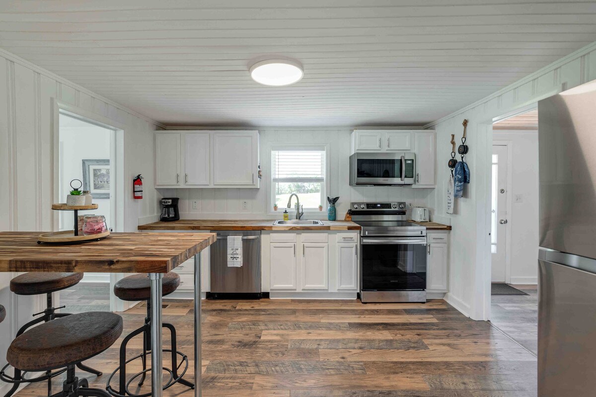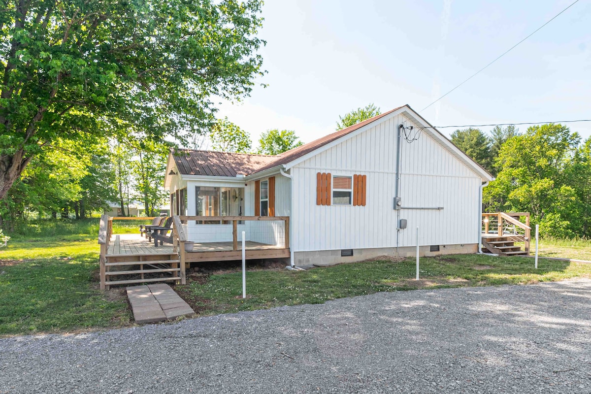 Boravit ćete u našoj gostinjskoj kući s kompletnom kuhinjom, plinskim kaminom, vešernicom i udobnom verandom i roštiljem vani. Spavaća soba ima bračni krevet, a dnevni boravak ima kauč na razvlačenje. Smještaj može vrlo udobno ugostiti 3 odrasle osobe ili četveročlanu porodicu. Zabranjeno je pušenje i kućni ljubimci. Molim vas, nemojte me prisiljavati da povedem vašeg psa. Dođite i doživite čaroliju naše zemlje uz prekrasni White Oak Creek.