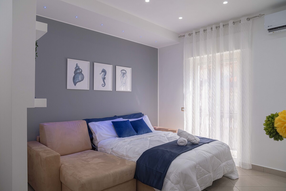 Fantastičan stan udaljen 50 metara od mora, u centralnom dijelu. Moderan, moderan, udoban, funkcionalan i opremljen svakom udobnošću, savršen za svakog putnika (samce, parove i porodice koji putuju na odmor ili posao). Odličan je i za „romantični odmor”. Strateška lokacija, nekoliko metara od gradske obale i nekoliko minuta hoda od središnjeg trga Piazza Pitagora. Do bilo kojeg mjesta od interesa u gradu možete doći pješice. Potpuno besplatno parkirališno mjesto.