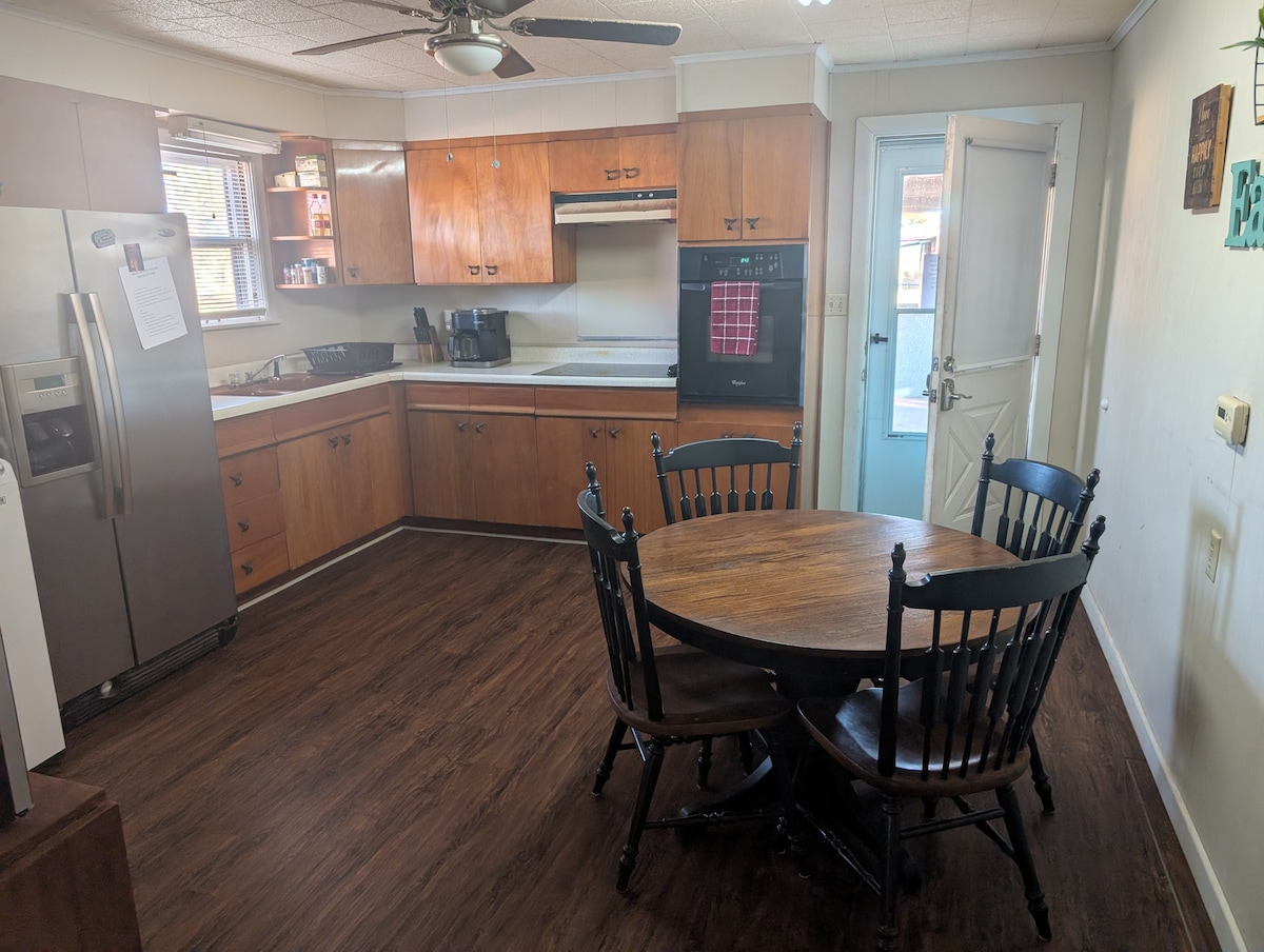 Ova 2 spavaće sobe/1 kupatilo udoban smještaj u stilu seoske kućice savršen je za vikend putovanja, lov i porodična okupljanja! Potpuno preuređen s novim ugradbenim osvjetljenjem, bojom, podovima i svim novim dekorom. Pobrinut će se da se osjećate kao kod kuće! Glavna spavaća soba ima krevet na rasklapanje u ormaru s posteljinom. Kompletna kuhinja s posuđem i priborom za jelo, zajedno s loncem za kafu Keurig i k-cups! Veliko stražnje dvorište.