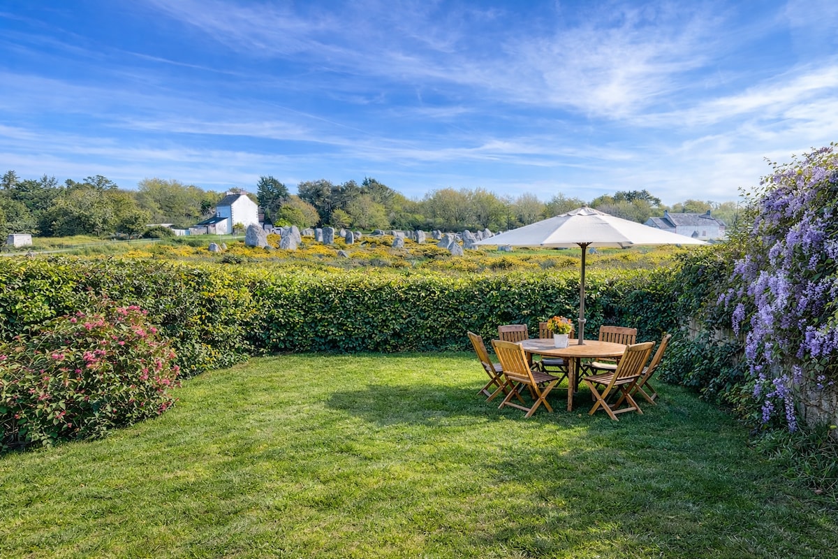 Dobro došli u Plavu zonu! Ako tražite mirno mjesto za opuštanje, svidjet će vam se Locmariaquer! Ova kuća je nekad bila naša kuća za odmor i potpuno je opremljena. Može spavati do 6/8 osoba. Idealno za porodični odmor. Bicikli se mogu iznajmiti u selu. Šetnja kroz sentiers côtiers je naša omiljena aktivnost. Selo je tipično i šarmantno.
