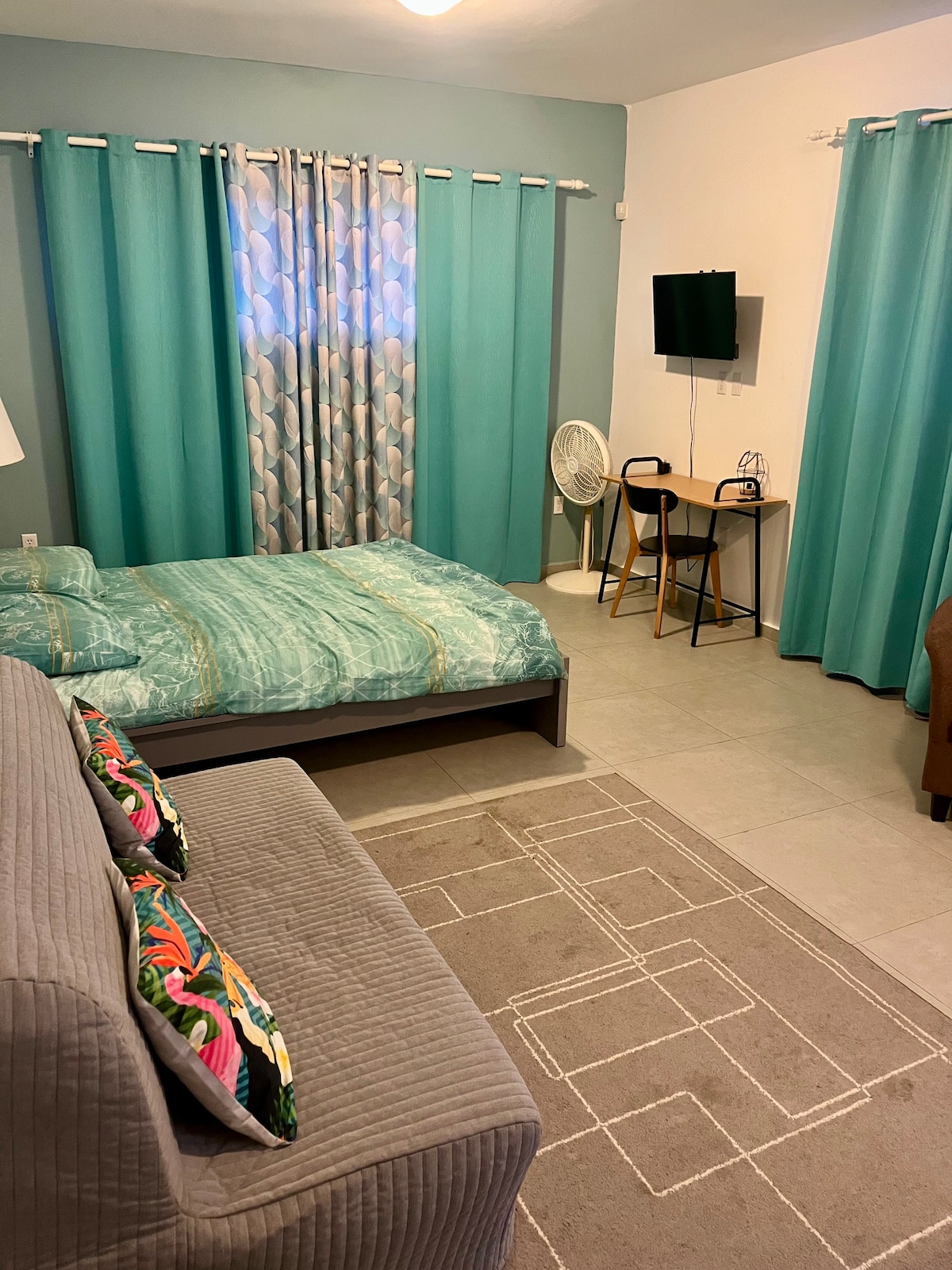Dreaming of Curaçao? Live the local experience!Book our cozy 1-bedroom apartment for comfort and convenience! We're centrally located near the airport, shopping, and the beautiful sea. With Top Restaurants within 5 mins. Enjoy a refreshing pool and tropical vibes. Peaceful and secured neighborhood. Benefit from free on-site parking and AC for a cool stay. Equipped with Fast Wifi, smart Tv’s and a nice kitchen so you can cook your own meals. Located 9 minutes away from the beach & downtown.