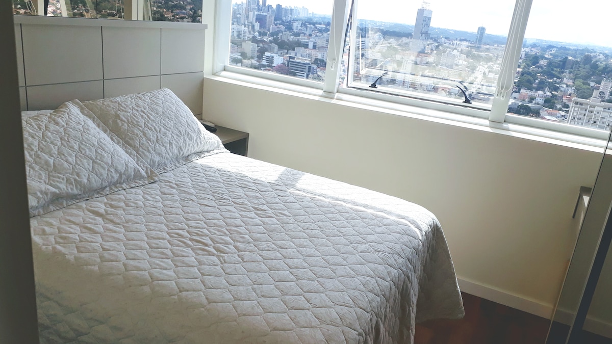 Região nobre, Champagnat, próximo parque Barigui, em frente ao supermercado, perto Shopping Barigui, Expo Unimed e Renault e do bairro Batel e Cidade Industrial. Com moveis planejados e completa linha de eletros, roupa de cama e banho. Com ar condicionado.Condomínio com academia, piscina coberta e aquecida, jacuzzi, sauna, brinquedoteca, lavanderia custo de ficha. Max 3 hospedes. Não temos vaga de garagem, porém tem no prédio pra alugar só solicitar para verificarmos a disponibilidade.