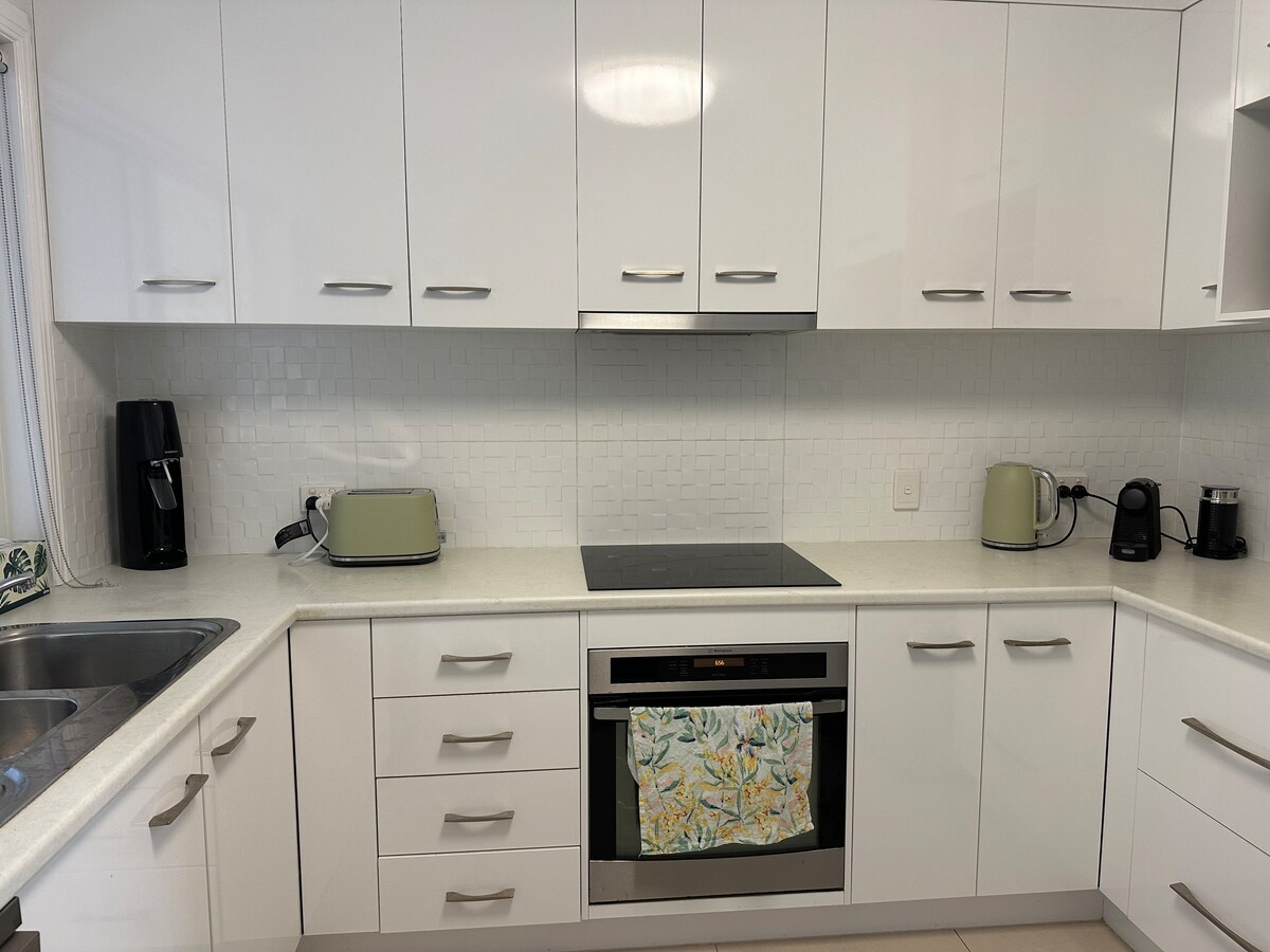 Opustite se u našem prostranom apartmanu za goste u prizemlju, savršenom za samce, parove ili porodicu (2 odrasle osobe, 2 djece) koji žele odmor na plaži bez gužve i vreve. Jednostavno 5 minuta hoda do prekrasne plaže Wurtulla, parkova, igrališta, pješačke/biciklističke staze uz plažu. 6 minuta vožnje do bolnice Sunshine Coast Uni ili jezera Currimundi, prodavnica i restorana. Osjećajte se kao kod kuće u modernoj kuhinji, trpezariji, velikom kupatilu, dnevnom boravku, zasebnoj spavaćoj sobi (Queen) + ekskluzivna upotreba stražnje terase i roštilja.