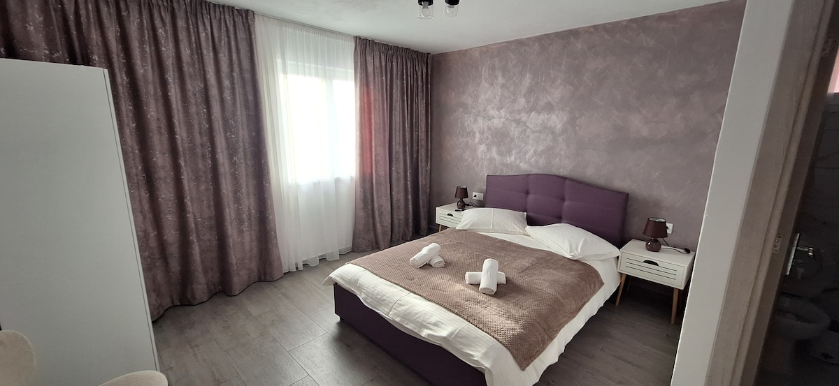 Iznajmljujem stan s 2 spavaće sobe u vili,nedavno završen, u Curtea de argesu, 4 min od starog centra, vrlo miran i lako dostupan prostor,nastanjiv 4 osobe , koristan prostor 65 m2, 1 soba + 1 prostrani dnevni boravak s potpuno opremljenom kuhinjom +1 hodnik +1 kupatila. Sadržaji: Privatni parking,trezor, Zelena zona,Smart tlv,Wi-Fi. Za one koji su zainteresovani za planinarenje ili biciklističke staze/mot kros na 700m započinju rutu u listopadnoj šumi s različitim šumskim stazama s izlazima i u grad i Transfagarasan .