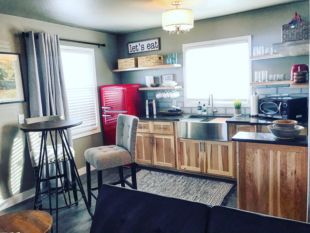 Equipped with fast WIFI, HEPA Air Purifyer, and PlasmaWave air cleaning! Located off Main Street in the historic railroad town of Cut Bank near Glacier National Park, this new remodeled studio suite features modern aesthetics and function such as quartz countertops, beautiful glass tile, and a full sized walk-in shower. Also comfortably equipped with air conditioning, a 55" Roku Smart TV and Netflix subscription, & desk space. Full kitchen amenities with basic cooking supplies provided.
