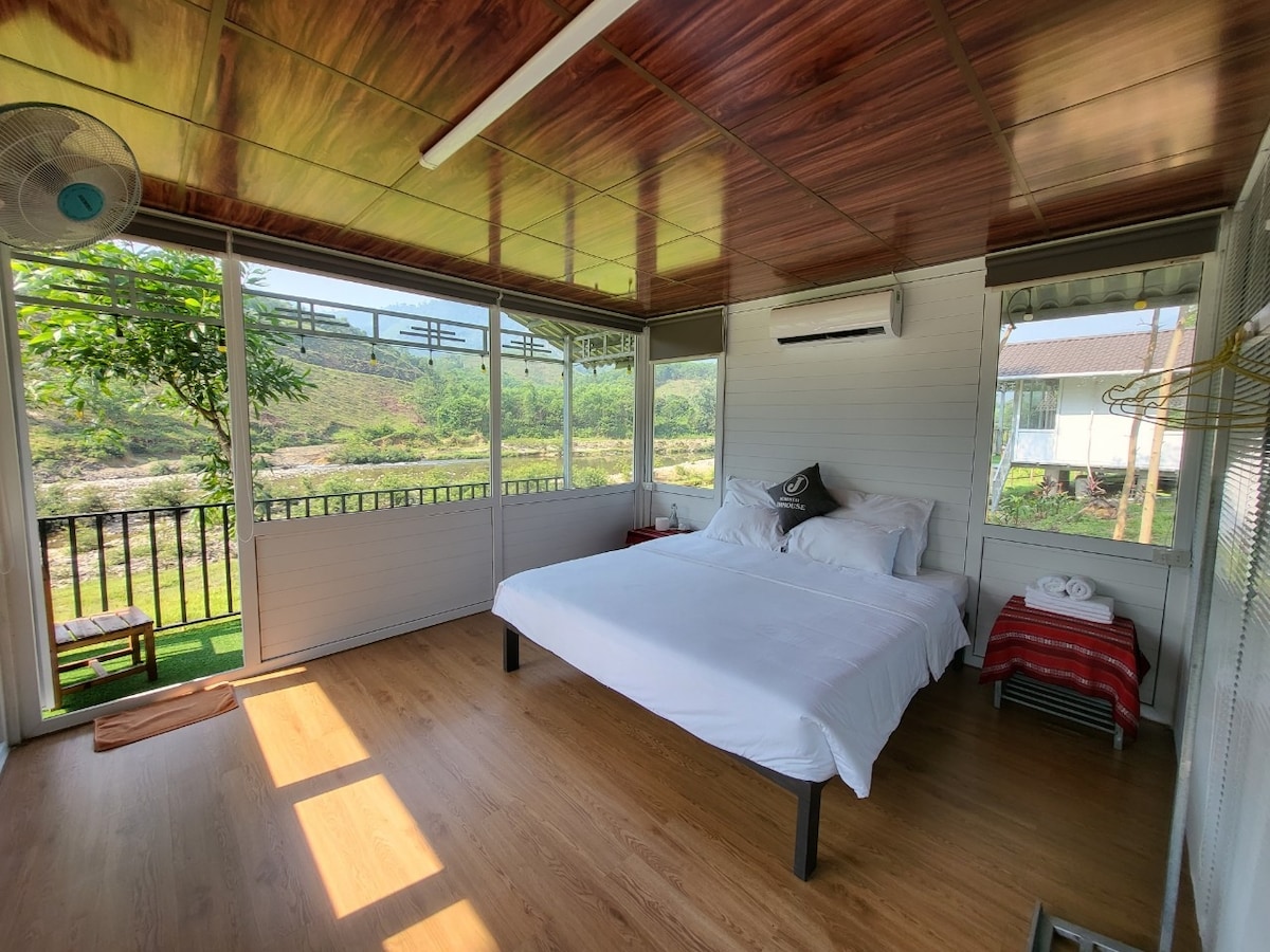 Bungalow là một không gian độc lập để bạn tận hưởng. Có ban công riêng nhìn ra sông nhìn ra núi. Chỗ đỗ xe riêng miễn phí và Wi-Fi cũng được cung cấp. Chúng tôi là một doanh nghiệp do gia đình điều hành sẽ đáp ứng nhu cầu của bạn.
