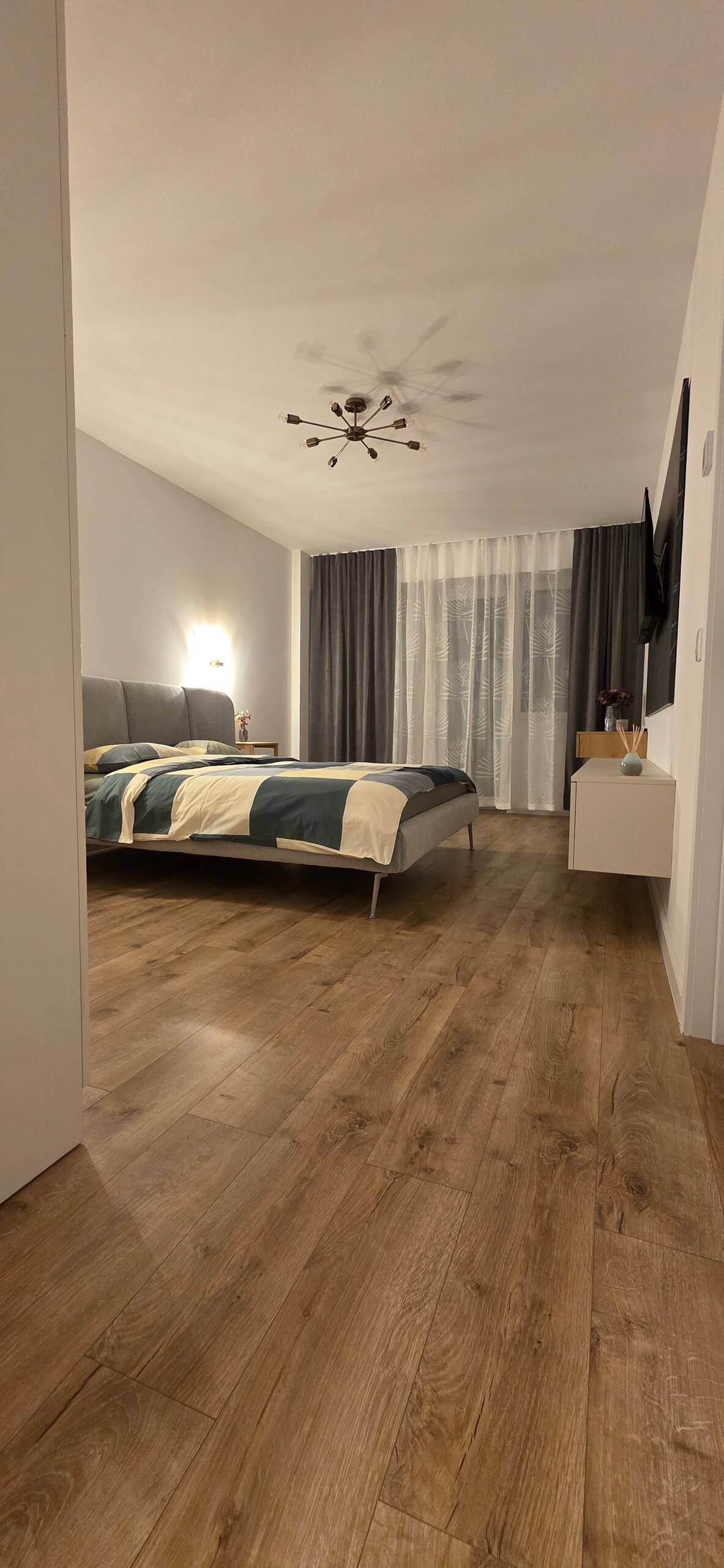 Dobro došli u naš prekrasan i moderan stan, smješten u srcu grada! Stan ima prostranu i udobnu spavaću sobu s udobnim bračnim krevetom, plišanom posteljinom i dovoljno prostora u ormaru. Dnevni boravak je svijetao i prozračan, s velikim prozorima koji propuštaju dovoljno prirodnog svjetla. To je savršeno mjesto za opuštanje nakon dugog dana razgledavanja ili rada, s udobnim kaučem, TV-om ravnog ekrana. Radujemo se što ćemo vas ugostiti u našem prekrasnom stanu!