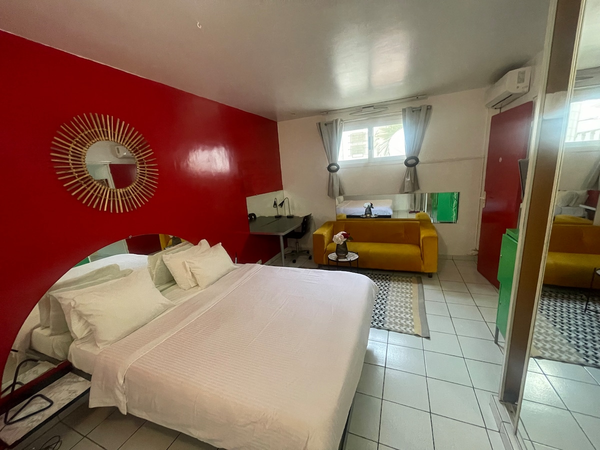 Ce logement élégant et unique promet un séjour inoubliable. studio Bourba est composé d’une grande chambre avec un canapé et un téléviseur, d’une salle de bain avec une baignoire sabot, d’une cuisine équipée avec une cuisinière à gaz avec hotte et d’un interphone, … Toutes les charges sont comprises: eau, électricité, linge et repassage 2 fois par semaine, ménage tous les jours sauf les Dimanches et jours fériés, la chambre est climatisée, avec un accès wifi haut débit, canal + horizon, etc.