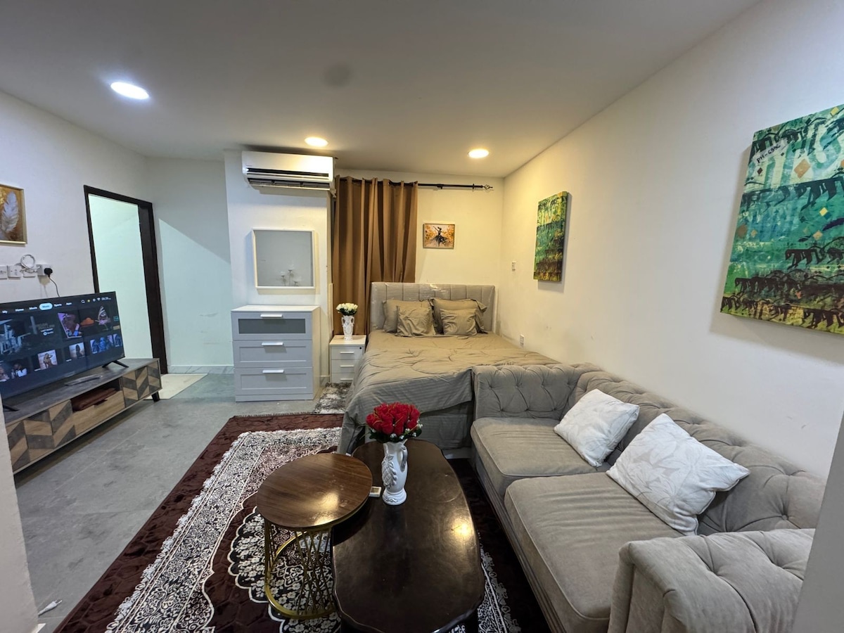 Discover Your Perfect Abu Dhabi Getaway Stay in this peaceful and private, ideally located close to all major Abu Dhabi landmarks: Khalifa city A • 5 minutes to Zayed International Airport • 5 minutes to Yas Island, Yas Marina Circuit, and Etihad Arena • 10 minutes to Sheikh Zayed Grand Mosque This modern studio offers everything you need for a comfortable stay: • A fully equipped kitchen with a cooker,microwave, refrigerator, and essential appliances The space • Smart TV for your entertainment