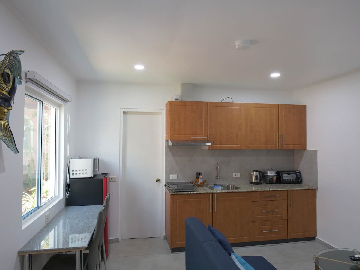 Private Jacuzzi Room in Panglao near Alona Beach! 🙂 Unwind at this centrally-located suite only 1.5 km from Alona Beach and a 3 minute walk to Sunset Beach Spot. Relax after a day of diving, beach going, or sightseeing in the spacious two person jacuzzi tub. Or enjoy our new gym - the most complete hotel gym on the island. Lounge in comfort on the premium mattress while you watch your favorite shows on Netflix. Enjoy a nice hot shower to prepare for your day. This suite has it all!