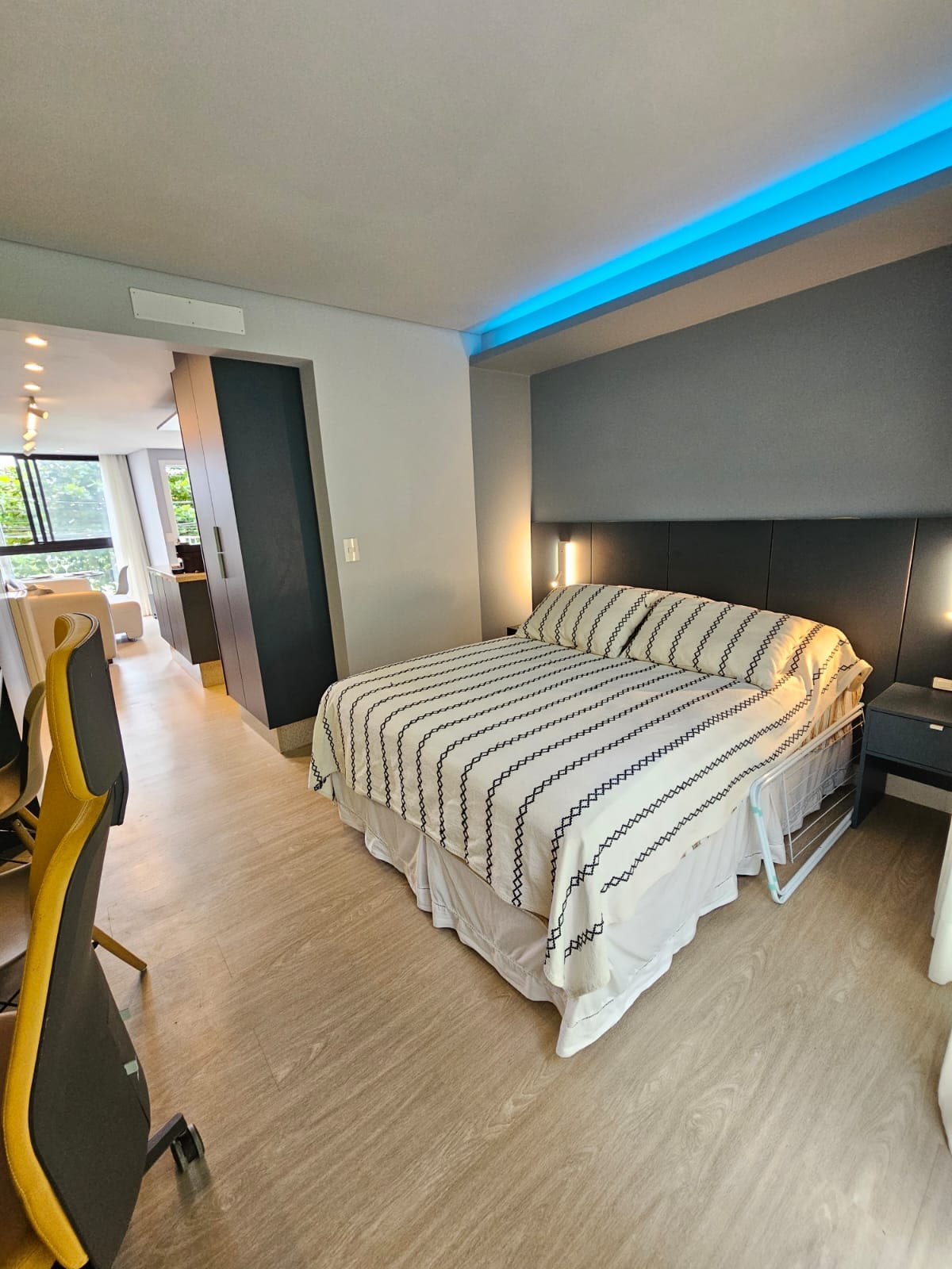 Stan visokog standarda, koji se nalazi u jednoj od najpoznatijih četvrti u Brazilu. Jurerê - Florianopolis. Ima površinu od 140 m2 i dva super moderna apartmana koji su vrlo dobro opremljeni za vašu udobnost. Naš prostor sadrži: * Kuhinja: Dupleks frižider, mašina za suđe, električna rerna, mikrovalna pećnica, Nespresso aparat za kafu, blender, aparat za sendviče, ploča za kuhanje, kompletno posuđe i komplet tava, * Dnevni boravak: - Samsung TV ''75'', električni kauči i fotelje.