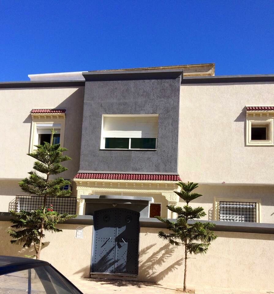 Grand logement style américain agréable, lumineux avec jardin peut accueillir plus que 5 personnes à 1000 m de la plage tous les commerces à côté à 5mn à pied, centre ville 5 mn à pied le souk aussi