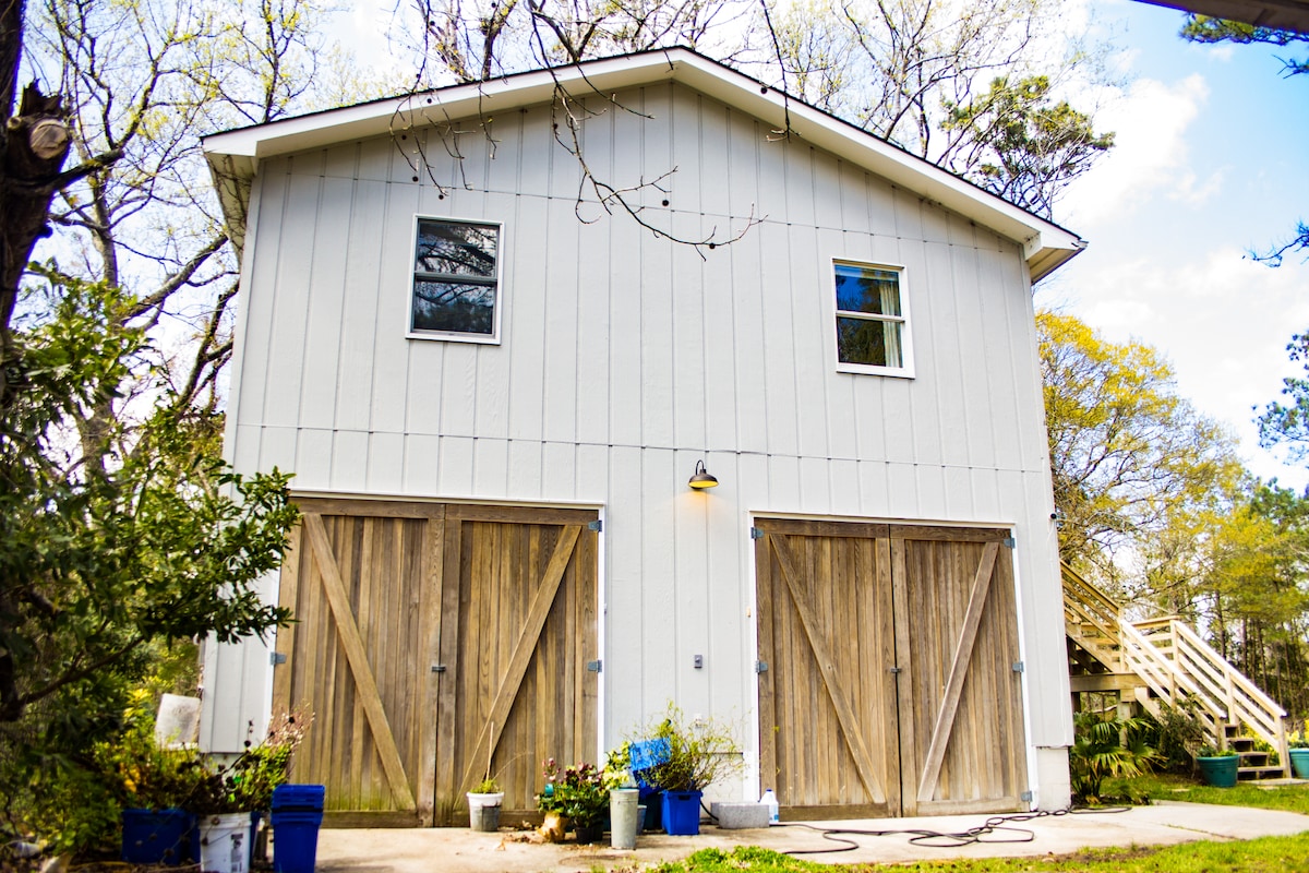 Opustite se i uživajte u privatnom boravku u srcu Kill Devil Hillsa. Smješten na 9,5 milje, naš samostojeći stan iznad garaže savršen je priobalni bijeg koji se i dalje osjeća kao kod kuće. Smješteni u centru mirnog okruženja, od nas vas dijeli kratka šetnja, vožnja biciklom ili vožnja do mnogih lokalnih restorana, trgovina, atrakcija i plaže. Uložili smo toliko ljubavi u ovaj prostor u nadi da će putnici moći doživjeti radost koju nam Outer Banks donosi svaki dan.