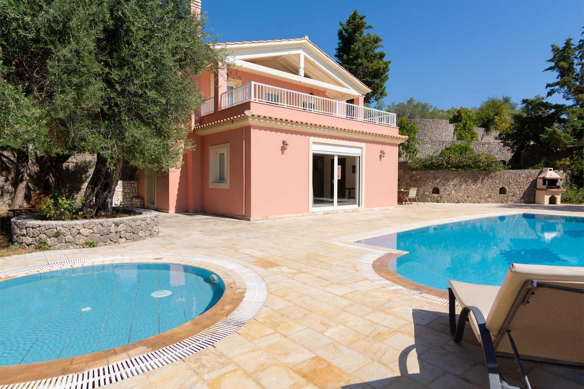 Vrlo sofisticirana vila s pogledom na prirodno okruženje, idealna za ljeto i zimu. Izgrađen na vrhu brda, usred maslinika na Krfu, daleko od gužve i buke.
