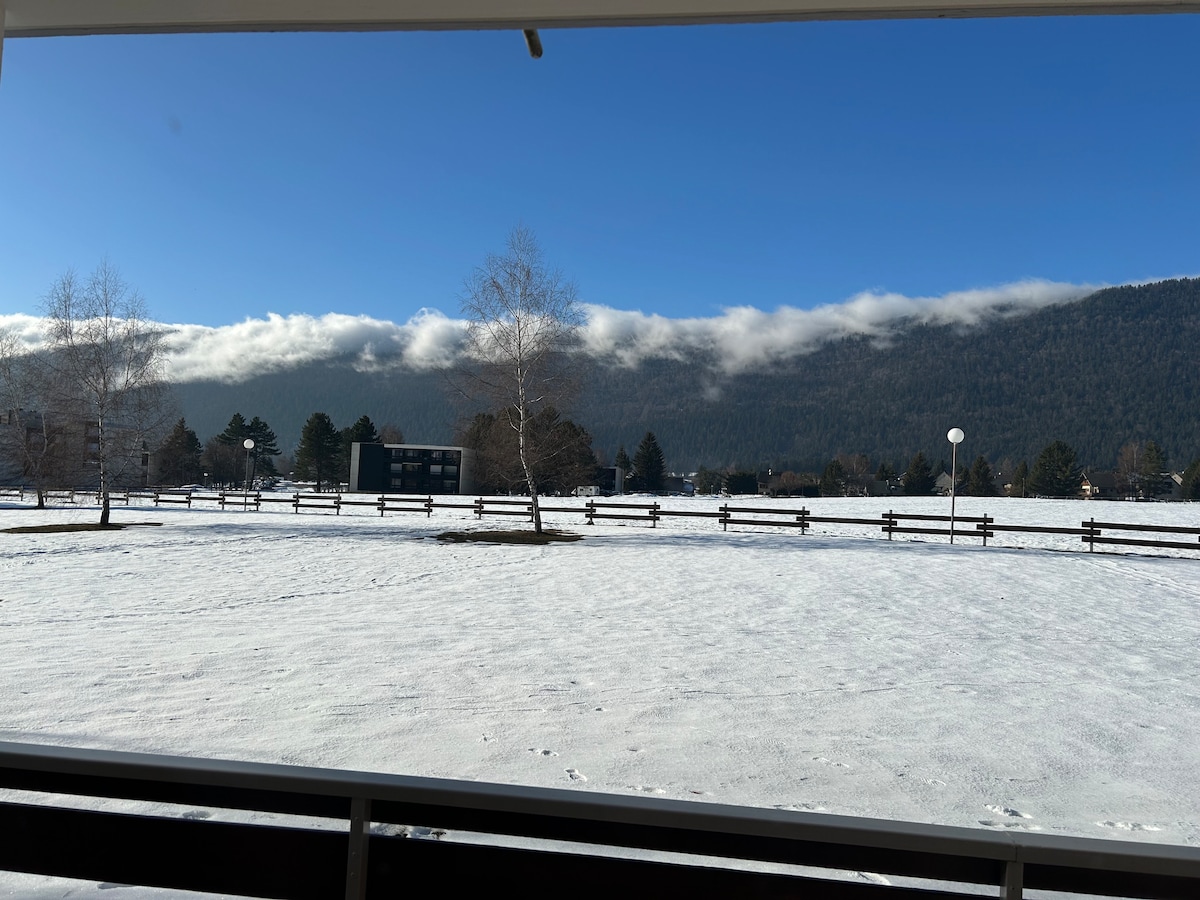Atmosfera planinske kuće u planinama, idealna za skijanje⛷, planinarenje i čahura! Terasa okrenuta prema južnom ljetu i zimi, prava radost! Privatni punjač za električna vozila! Centar sela je udaljen 7 minuta hoda i nudi sve prodavnice potrebne za vaš boravak, nema potrebe za automobilom! Za skijaše, nordijski centar i besplatni prevoz za alpsko skijanje udaljeni su 4 minute! Rezidencija je vrlo mirna, kao i kuća, uprkos uobičajenosti!