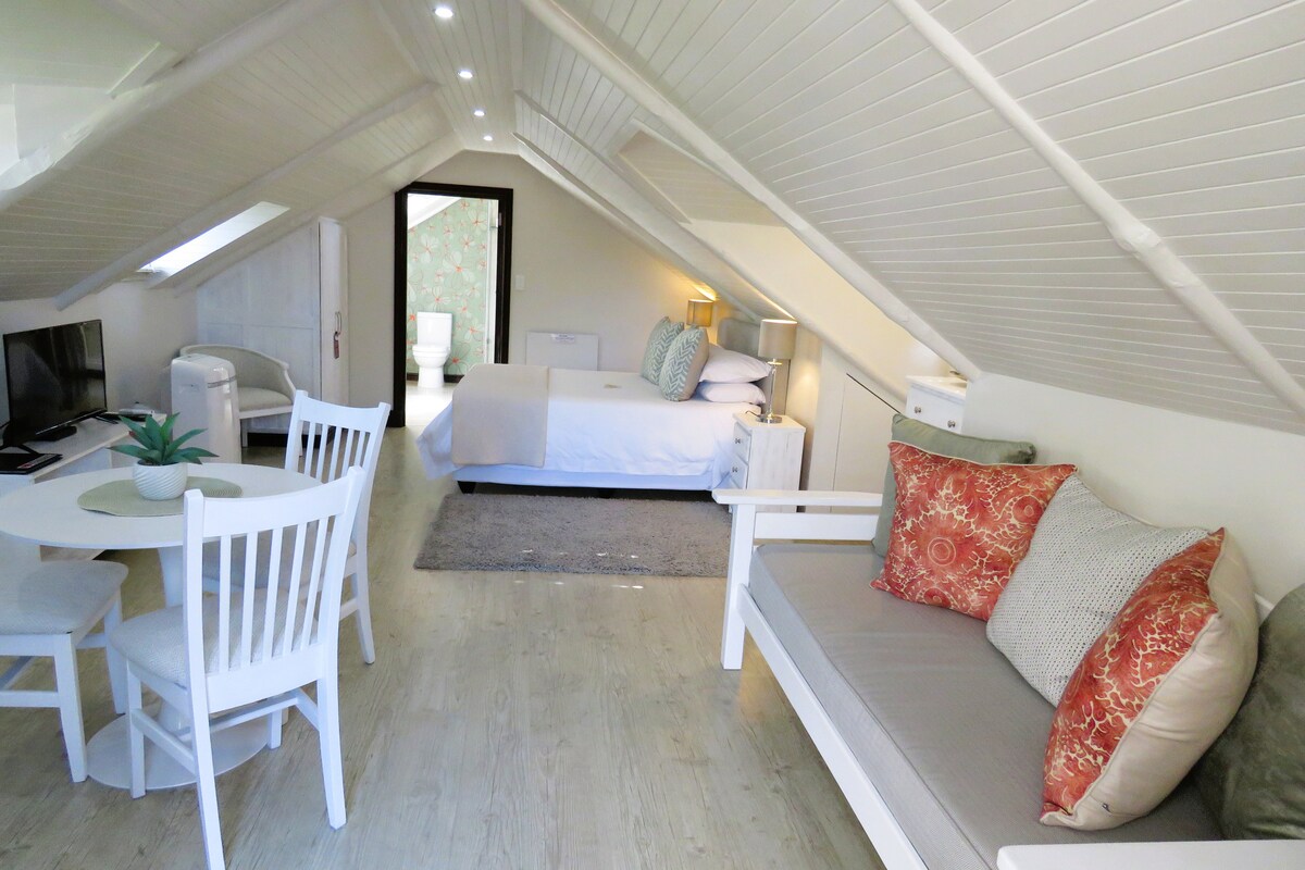 Pobjegnite u Studio Room, privatno utočište u Hermanusu s vlastitim ulazom i stepeništem. Opustite se na osunčanoj terasi s ležaljkama, roštiljem i pogledom na planine. Ovaj prostor otvorenog tipa spaja udobne prostore za spavanje, blagovaonicu i čajnu kuhinju, dok je kupatilo (kada i tuš) privatno i ima vrata. Uživajte u modernim pogodnostima kao što su klima-uređaj, Wi-Fi, DSTV i Nespresso. Savršeno za parove koji traže mir i privatnost. Ne primaju se djeca mlađa od 12 godina. Čajna kuhinja ima: toster, čajnik, mini pećnicu s roštiljem i frižider.