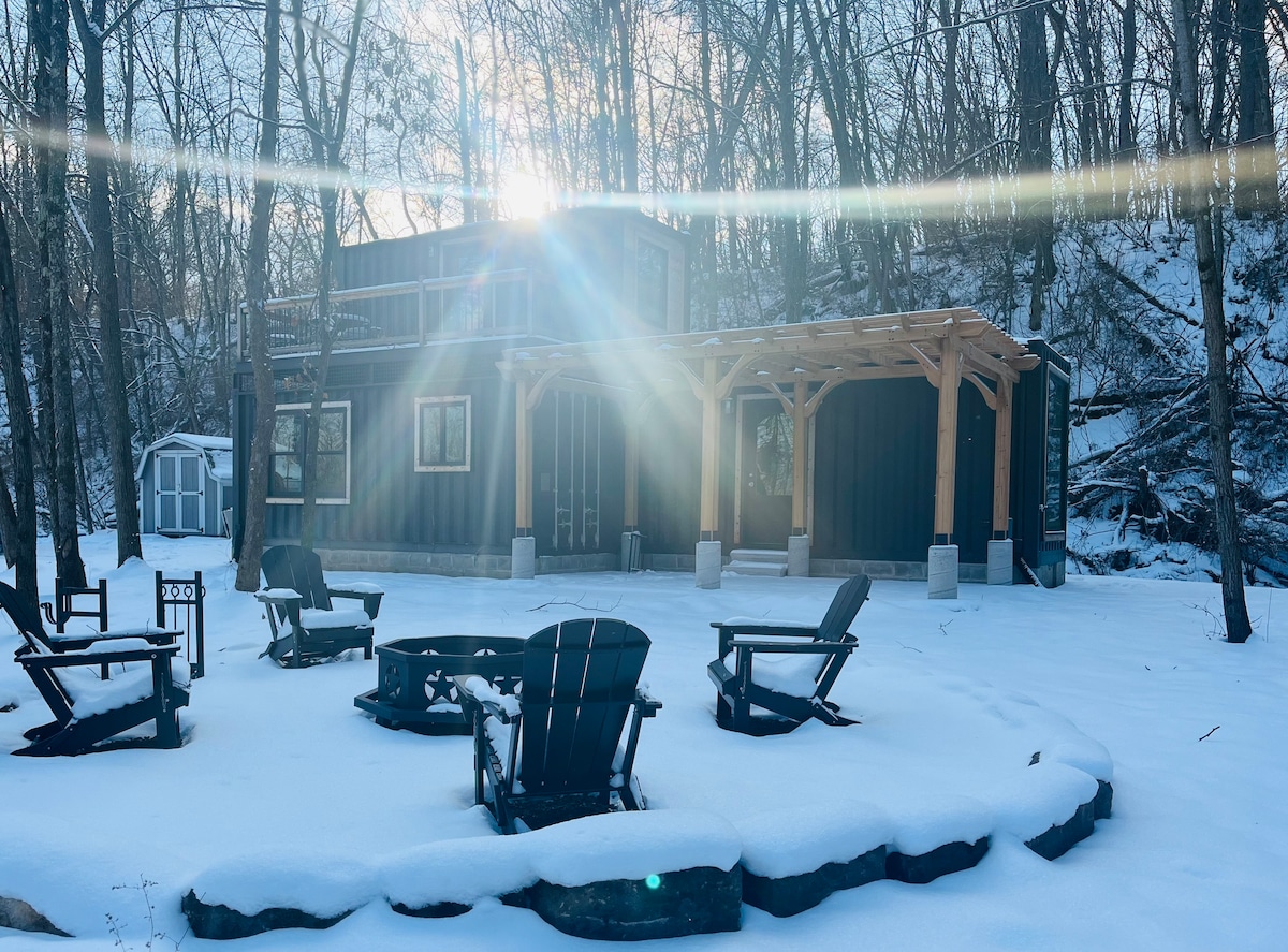 Enjoy our secluded getaway, that's not too far away! This cabin is made from three combined shipping containers to create one memorable experience for our renters. Housed on ten acres on Beaver creek and surrounded by nature's beauty, this rental is sure to give you the adventure and relaxation you need. Enjoy your favorite drink on one of two beautiful patios, by the fire inside or out, and end your evening in the warmth of our hot tub. Only 6 minutes from Route 11 in Lisbon, OH!