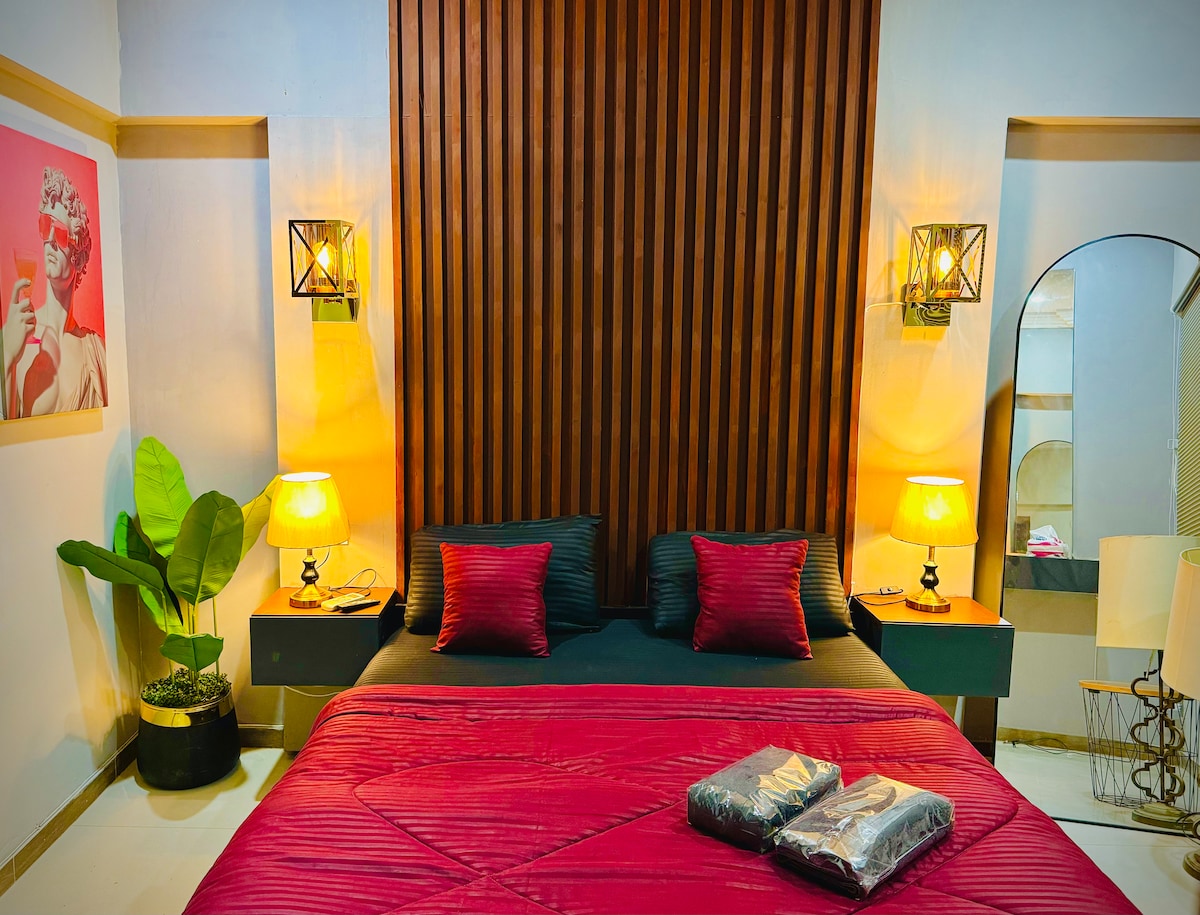 Doživite miran i siguran život u našem elegantnom stanu u fazi VIII, DHA Karachi, 2 minute od mora i 9 minuta od tržnog centra Dolmen i luksuznih restorana. Uživajte u pogodnostima besplatnog dnevnog čišćenja i čišćenja. Usluga automobila, vozača i hrane (uz dodatnu naknadu) dostupna na zahtjev. Naši prostrani dnevni boravci, moderna kuhinja i lijepo uređene spavaće sobe sa zasebnim kupatilima sa rezervnim generatorom osiguravaju nezaboravan boravak. Savršeno za porodice i poslovne putnike, nudeći brzi Wi-Fi.
