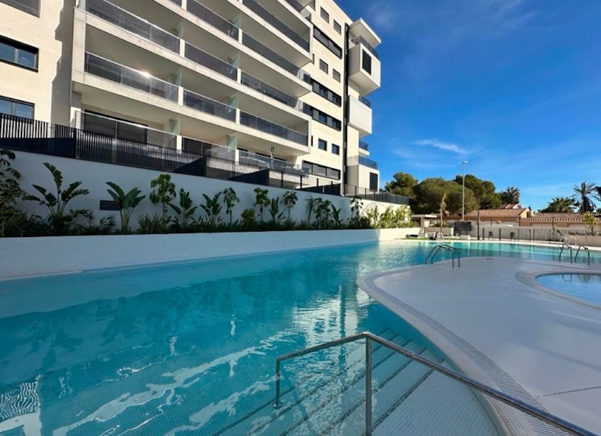 Luksuzni stan s pogledom na more i privatnim jacuzzijem u Španiji, Playa Flamenca, Torrevieja Detalji o stanu: • Površina: 75 m² • 2 elegantne spavaće sobe (jedna s udobnim bračnim krevetom) • 2 moderna kupatila, uključujući jedno privatno • Elegantan dnevni boravak s potpuno opremljenom kuhinjom i kaučem • Dizajnerski namještaj u cijelom smještaju • Balkon s pogledom na more, terasu i zajednički bazen • Privatna terasa s jacuzzijem i ekskluzivnom zonom za opuštanje • Idealno za najviše 4 gosta