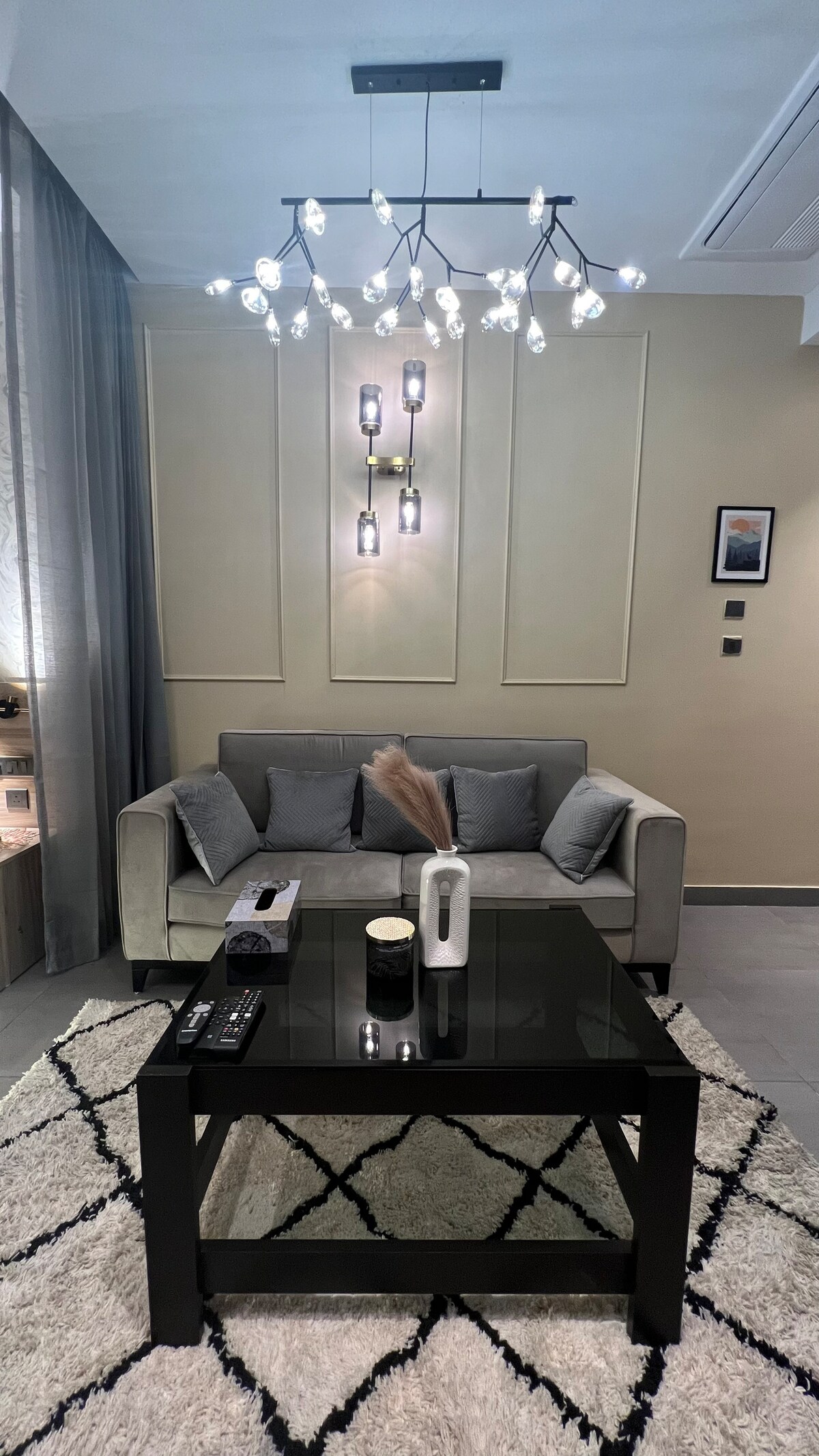 Dobro došli u svoj elegantni odmor u srcu grada, samo nekoliko minuta od Cybercityja i Međunarodnog aerodroma. Ovaj luksuzni stan u neboderu nudi zadivljujući pogled na horizont, dizajnerske interijere i karakteristike pametnog doma za vrhunsku praktičnost. Bilo da ste ovdje poslovno ili u slobodno vrijeme, uživajte u udobnosti s 5 zvjezdica uz plišanu posteljinu, potpuno opremljenu kuhinju, brzi Wi-Fi i sigurnost 0-24. Savršeno za profesionalce, parove ili putnike koji putuju sami i traže profinjen i opuštajući boravak.