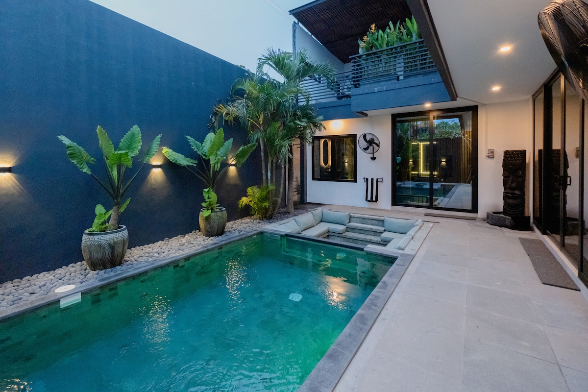 A beautiful and tranquil villa with two comfortable bedrooms and a large sofa bed in the living room. The villa features a private swimming pool and a balcony for relaxing. The kitchen is fully equipped with cooking and dining utensils. All rooms are air-conditioned, making your stay comfortable and spacious. Our villa is located in the heart of Sanur. Close to supermarkets, restaurants, the beach, and Sanur's tourist attractions, it's perfect for a relaxing holiday in Bali!❤️