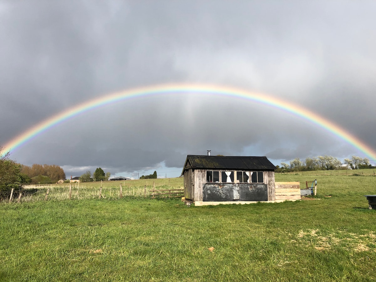 "Hares Rest" shepherd hut is situated in a private location within a paddock with amazing rural views. Hares, red kites, barn swallows and deer are just some of the wild life you can see. Good pubs within various walking distance (3, 30 and 45 mins). Bowood House, adventure park, golf course and spa is 5 mins drive away. The train station is a 10 minute drive with easy access to Bath. We have horses so only very well behaved dogs are allowed by prior agreement and additional charge.