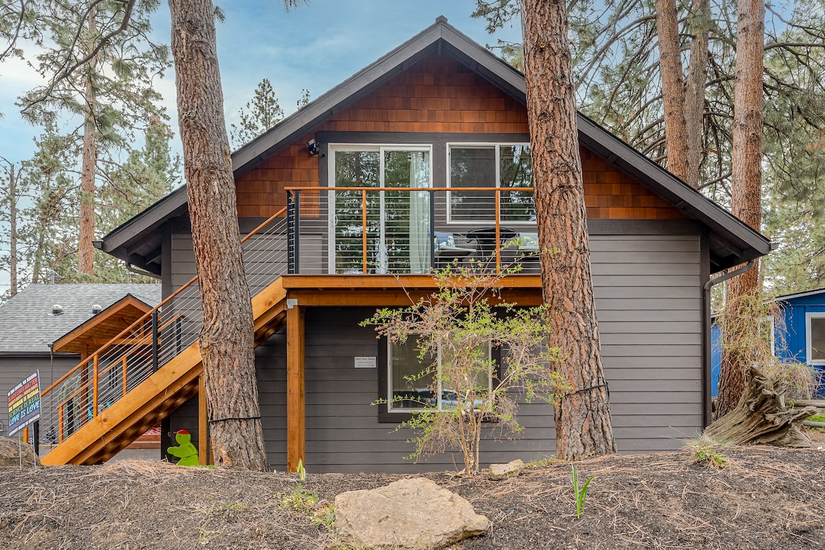 **NEWLY INSTALLED! ** Spa & sauna grotto is all ready for your romantic Bend getaway! This quiet, wooded, centrally located, standalone bungalow is steps from the Deschutes River trail, easy walking distance to Mill Dist. and Hayden Amphitheater. It boasts a comfy king bed w/premium down bedding & pillows, dedicated free parking (+ extra cars or small RVs), outdoor dining and patio area, washer/dryer, and a kitchen fully stocked with everything you need for fun and relaxation for all seasons!