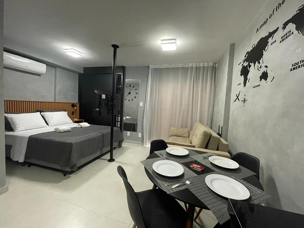 Apartamento super confortável tipo studio com localização imbatível para seus compromissos de trabalho e/ou lazer. ► Cama de casal com colchão de molas; ► Smart Tv 40” (incluso Netflix, Prime Video, Disney+ e Globoplay); ► Ar-condicionado; ► Ventilador turbo; ► Persiana tipo blackout; ► Roupeiro com cabides; ► Caixinha de som bluetooth; ► Mesa de estudos/trabalho com luminária; ► Sofá-cama para casal; ► Mesa para alimentação; ► Cozinha equipada para preparar pequenas refeições.
