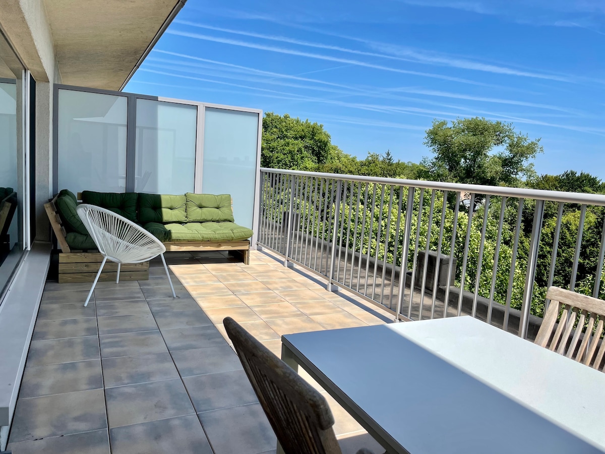 Dizajnerski stan s balkonom i pogledom na tornjeve u Gentu