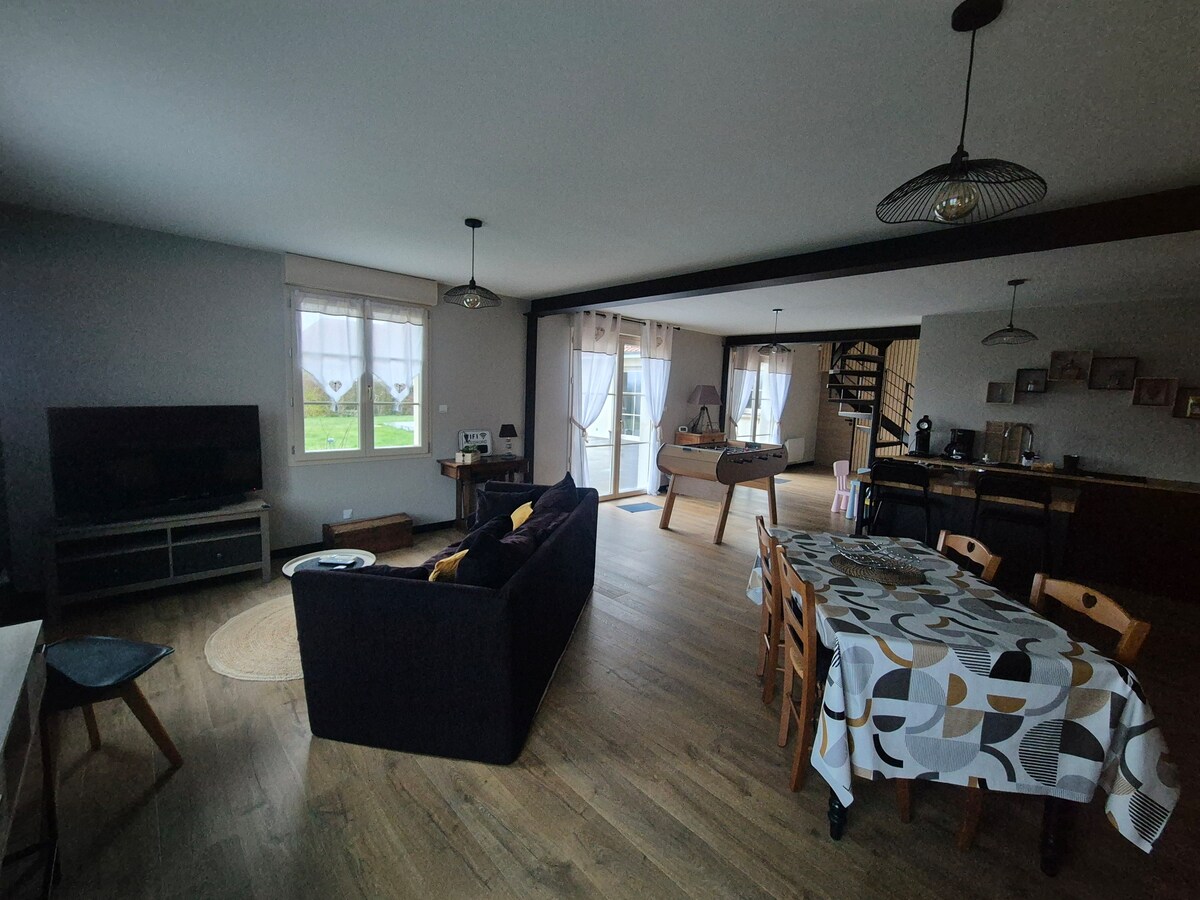 Ova kuća je odvojena od dugogodišnjeg stila s travnjakom posvuda, zavest će vas veranda, parking za dva automobila, unutrašnjost je opskrbljena Desvres pločicama. To je moderna i tradicionalna mješavina. Ovaj gite je namijenjen paru s dvoje tinejdžera ili troje male djece ili troje odraslih. Nema grupa mladih ljudi. Posteljina je osigurana. Peškiri i toaletne potrepštine nisu obezbijeđeni, kućni ljubimci nisu dozvoljeni.